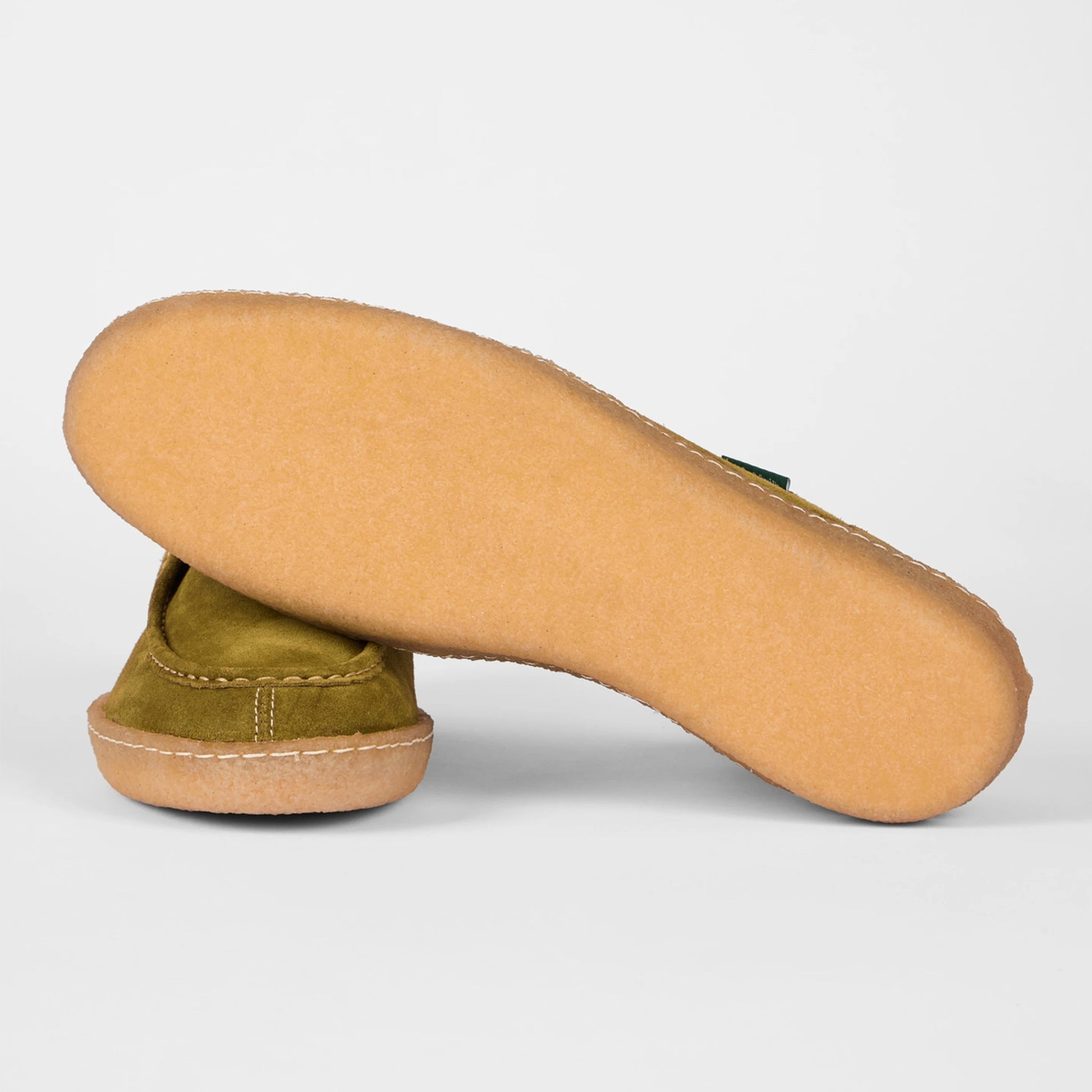 Paul Smith is a distinguished British designer who is renowned for his creative aesthetic, which combines tradition and modernity. Crafted in a suede leather, these khaki shoes feature a classic moccasin toe design and crepe rubber soles for comfort, with a cushioned insole , contrast heel pull and a PS logo tab. Wear these Buster casual shoes to style up any summer look.
