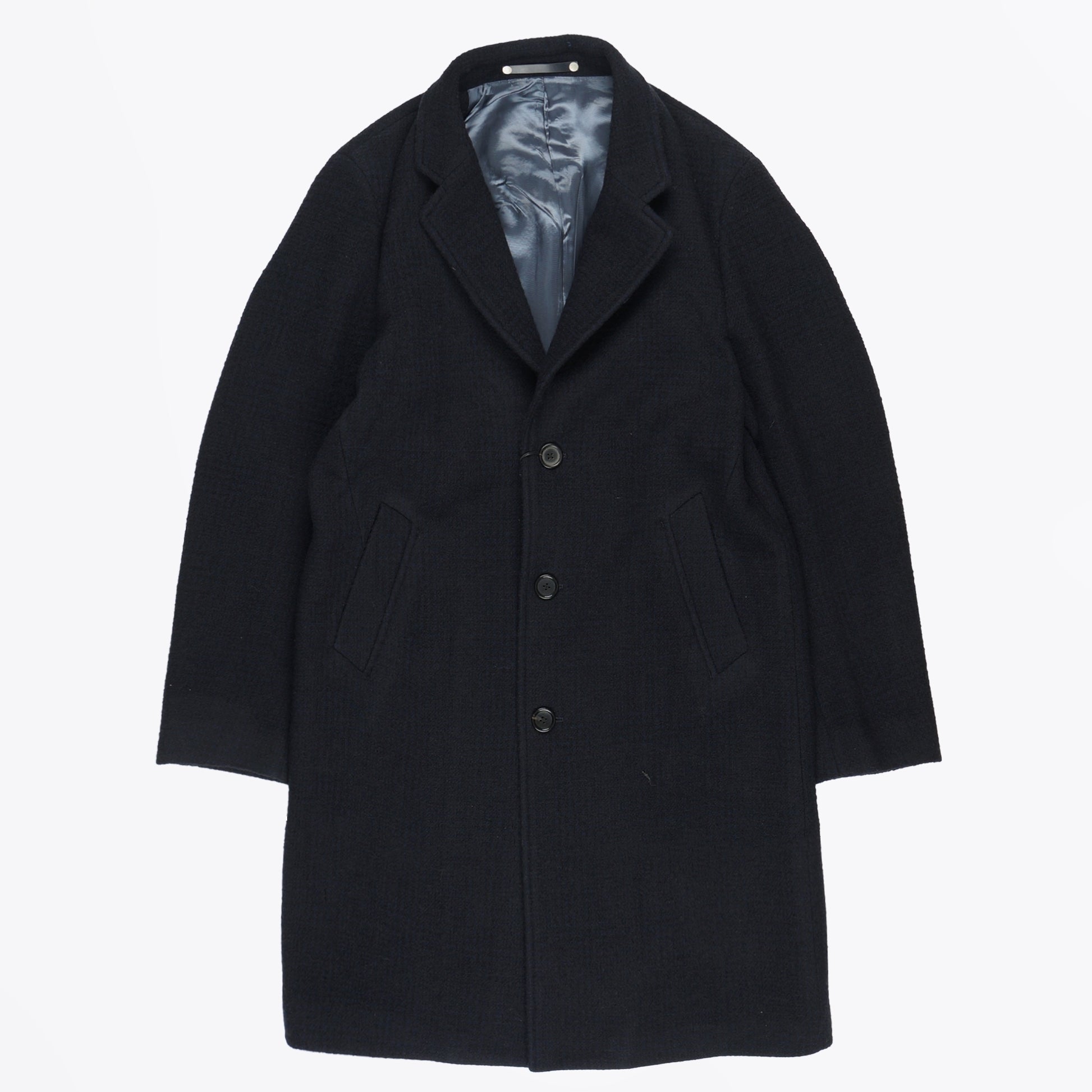 - Check Wool-Blend Overcoat - Dark Navy
