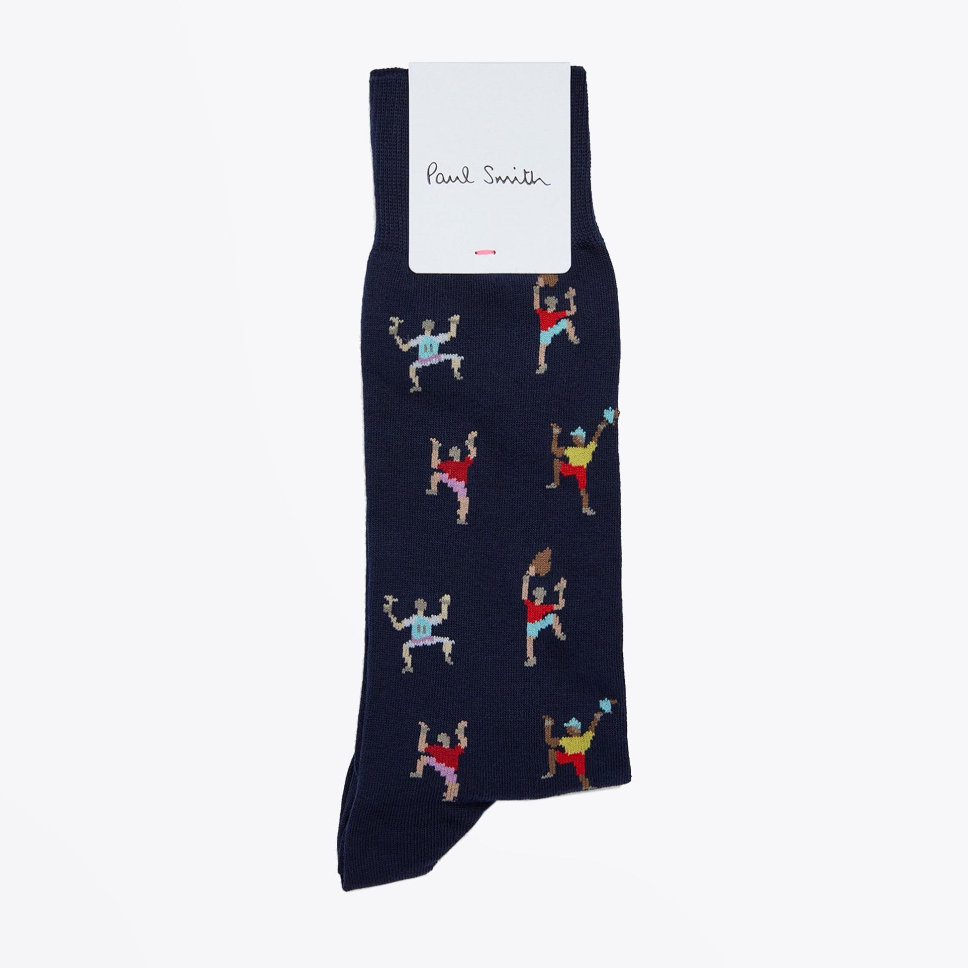 Paul Smith is a distinguished British designer who is renowned for his creative aesthetic, which combines tradition and modernity. Italian made soft cotton blend socks. These socks are embroidered with a 'Climber' pattern. Ribbed at the cuffs, this pair is made from soft cotton-blend.