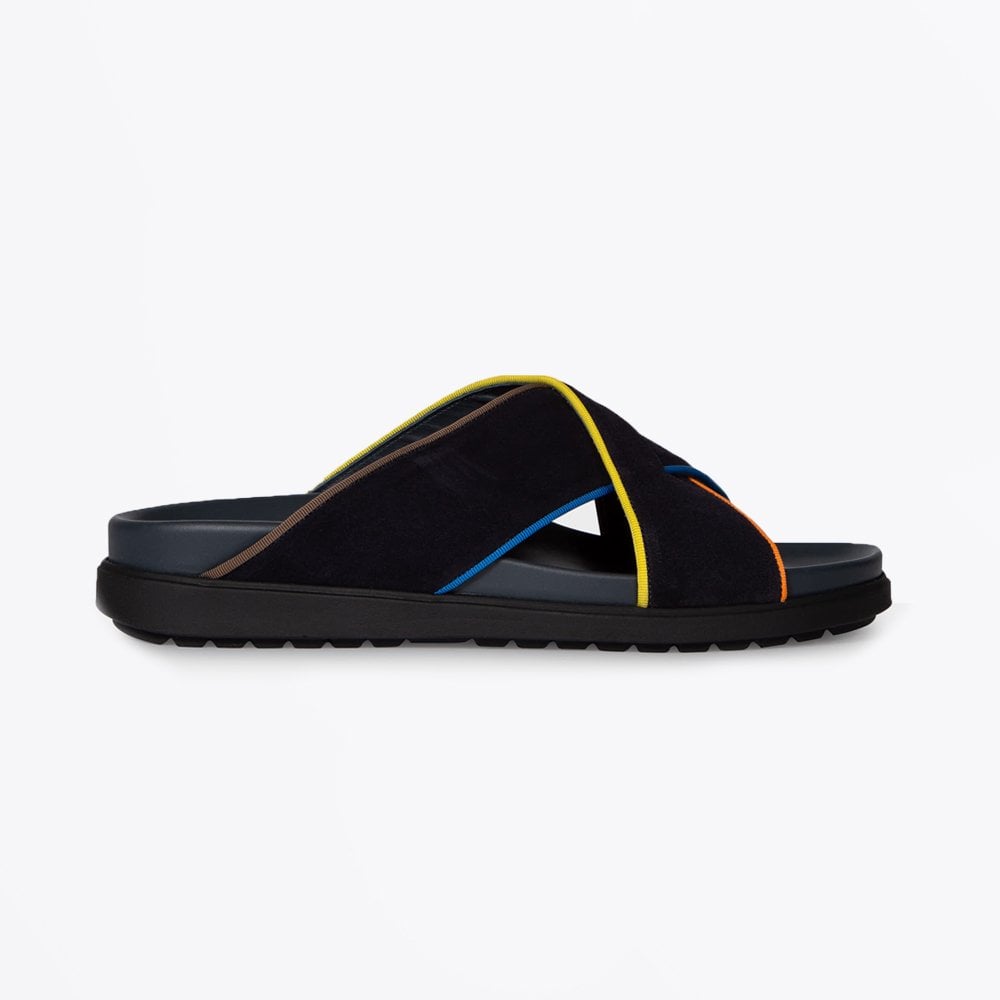 Paul Smith is a distinguished British designer who is renowned for his creative aesthetic, which combines tradition and modernity. Crafted in Italy, using premium quality suede, these sandals feature a crossover upper design, finished with colourful trim that is a distinctive design feature for Paul Smith. Wear these sandals with a pair of Universal Works shorts and a Wax London tee, for a great weekend away outfit.