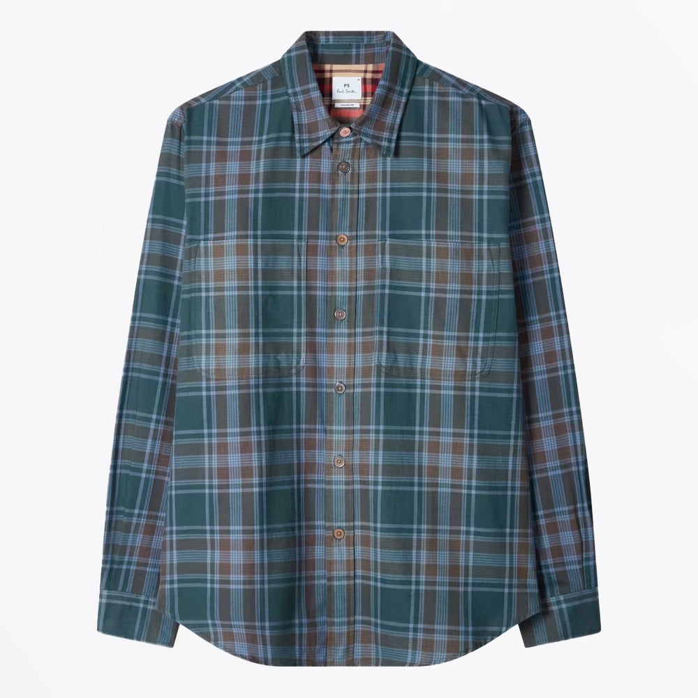 Paul Smith is a distinguished British designer who is renowned for his creative aesthetic, which combines tradition and modernity. Update your wardrobe staples with this option from Paul Smith. This green flannel shirt in soft brushed organic cotton, patterned with blue and brown checks for a timeless casual look. Cut to a relaxed fit and finished with pearlescent shell buttons and two large patch pockets for practicality.