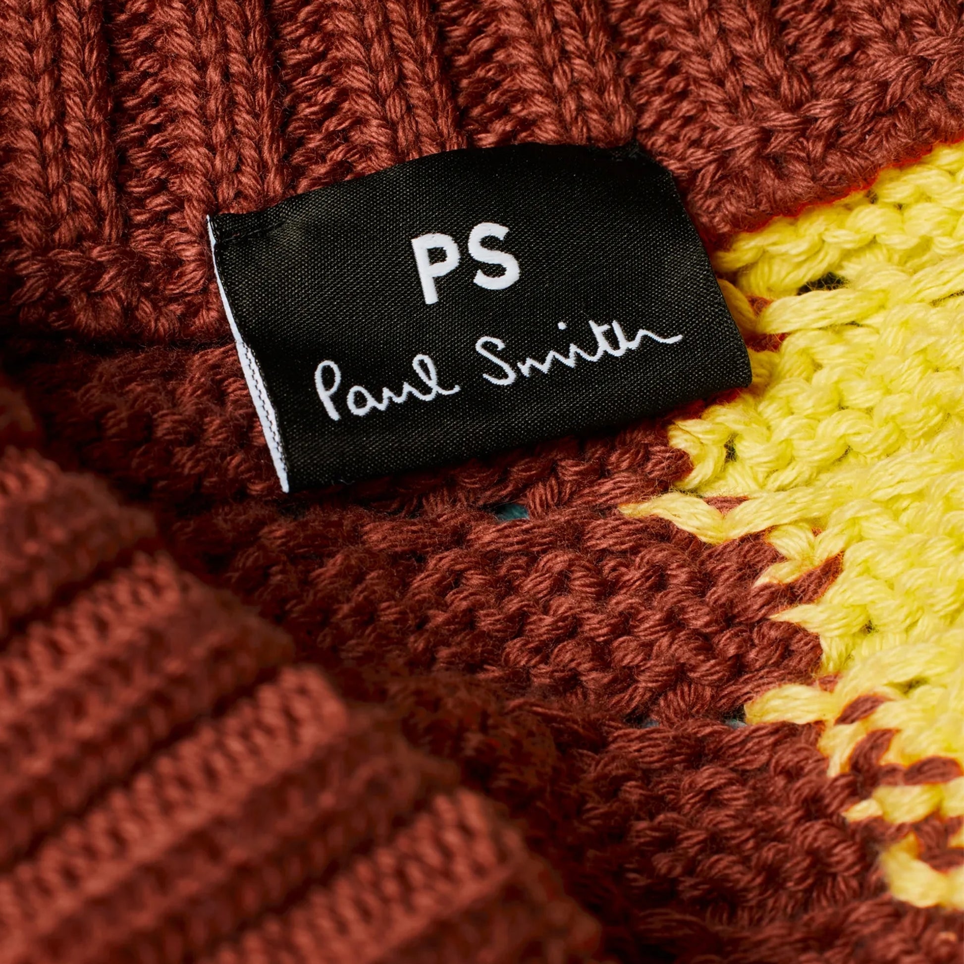 Paul Smith is a distinguished British designer who is renowned for his creative aesthetic, which combines tradition and modernity. Add a fun piece to your knitwear collection with this Paul Smith cardigan. Featuring a chunky knitted intarsia design, this cardigan has a multicoloured seasonal gradient wave, with a ribbed placket, ribbed cuffs and hem with contrast dark buttons. Style this cardigan over a plain t-shirt, with your favourite designer jeans and some Hoff trainers for a great casual look.