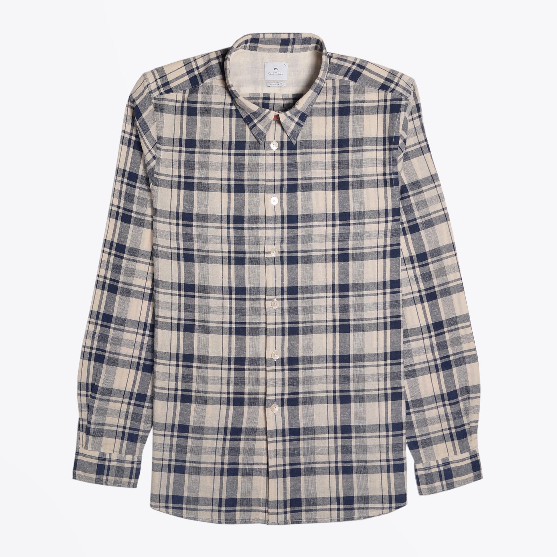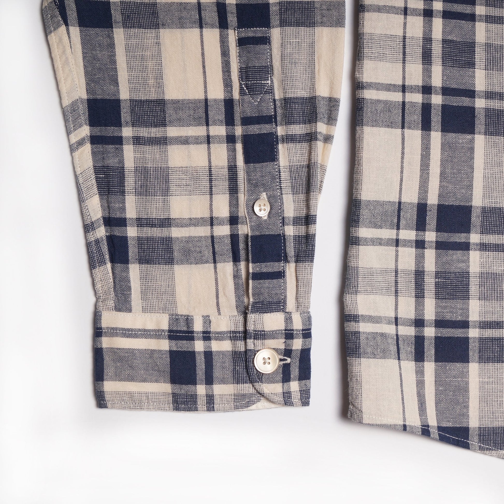 - Cotton-Linen Blend Check Shirt - Navy/Beige