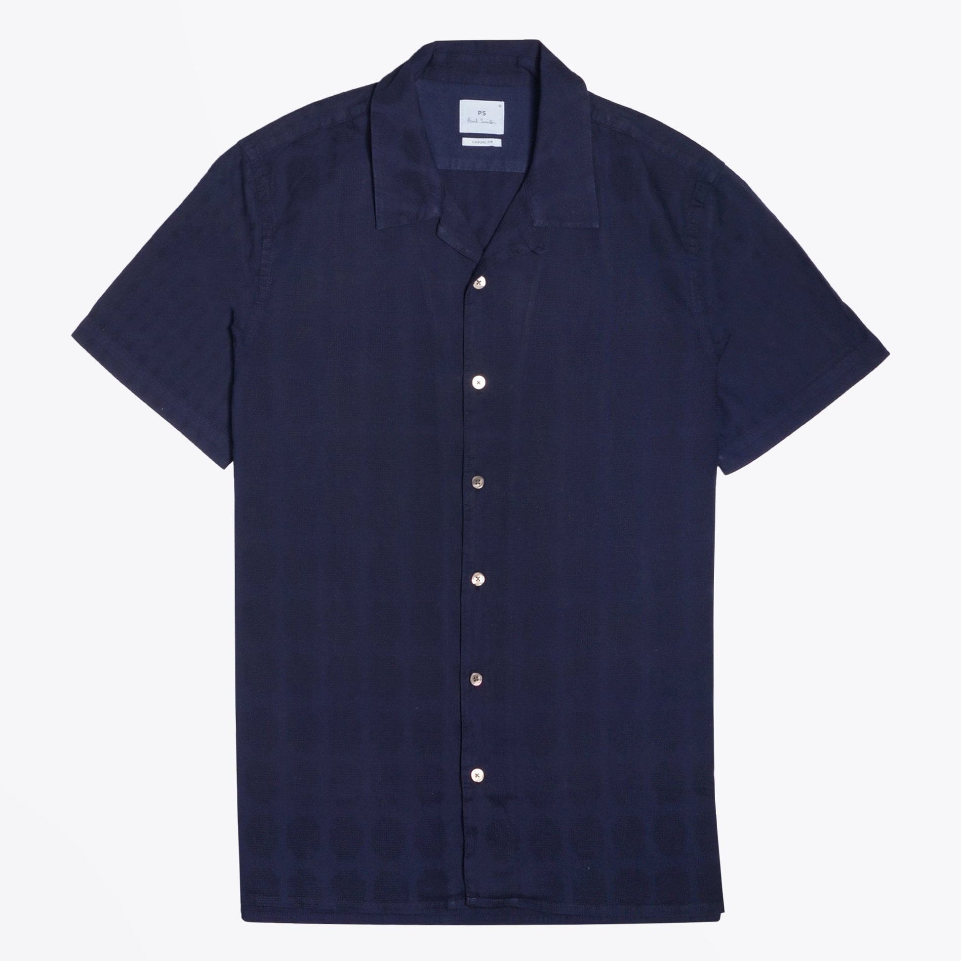 Paul Smith is a distinguished British designer who is renowned for his creative aesthetic, which combines tradition and modernity. This short-sleeve casual-fit shirt is crafted in 100% cotton and cut for a boxy shape. This lightweight shirt comes complete with a woven circle self pattern on the front and woven diamond self pattern on the sleeves and back. The finishing touches to this shirt include button-down closure, a soft cuban-style collar and straight cut hem with side vents. Men’s classic shirts with a hint of quirk are a Paul Smith staple.