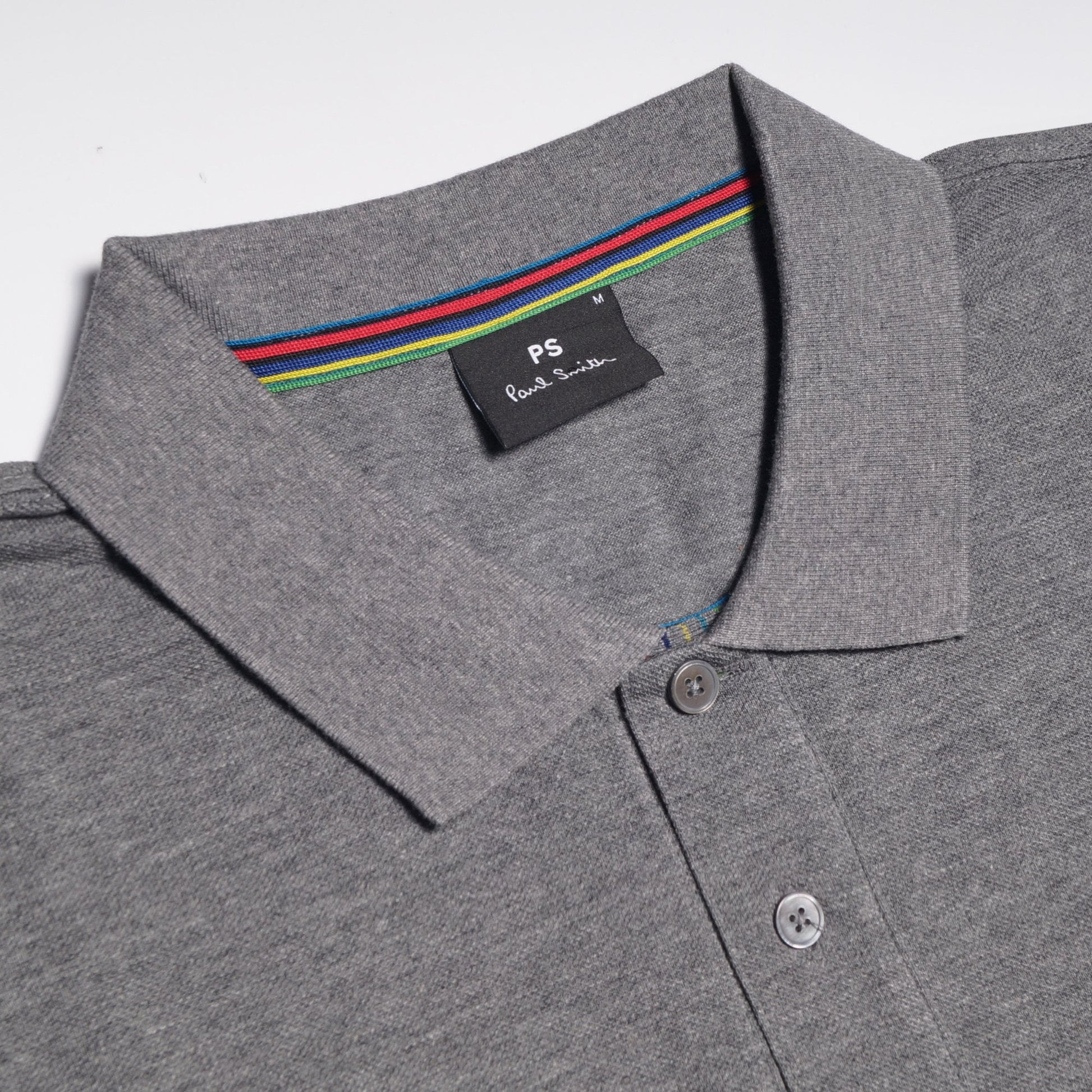 Paul Smith is a distinguished British designer who is renowned for his creative aesthetic, which combines tradition and modernity. Constructed from 100% cotton this grey melange polo shirt features two-button closure, elasticated ribbed collar and cuffs and a stepped ribbed hem with side vents with a multi-coloured stripe detail. Plain back.