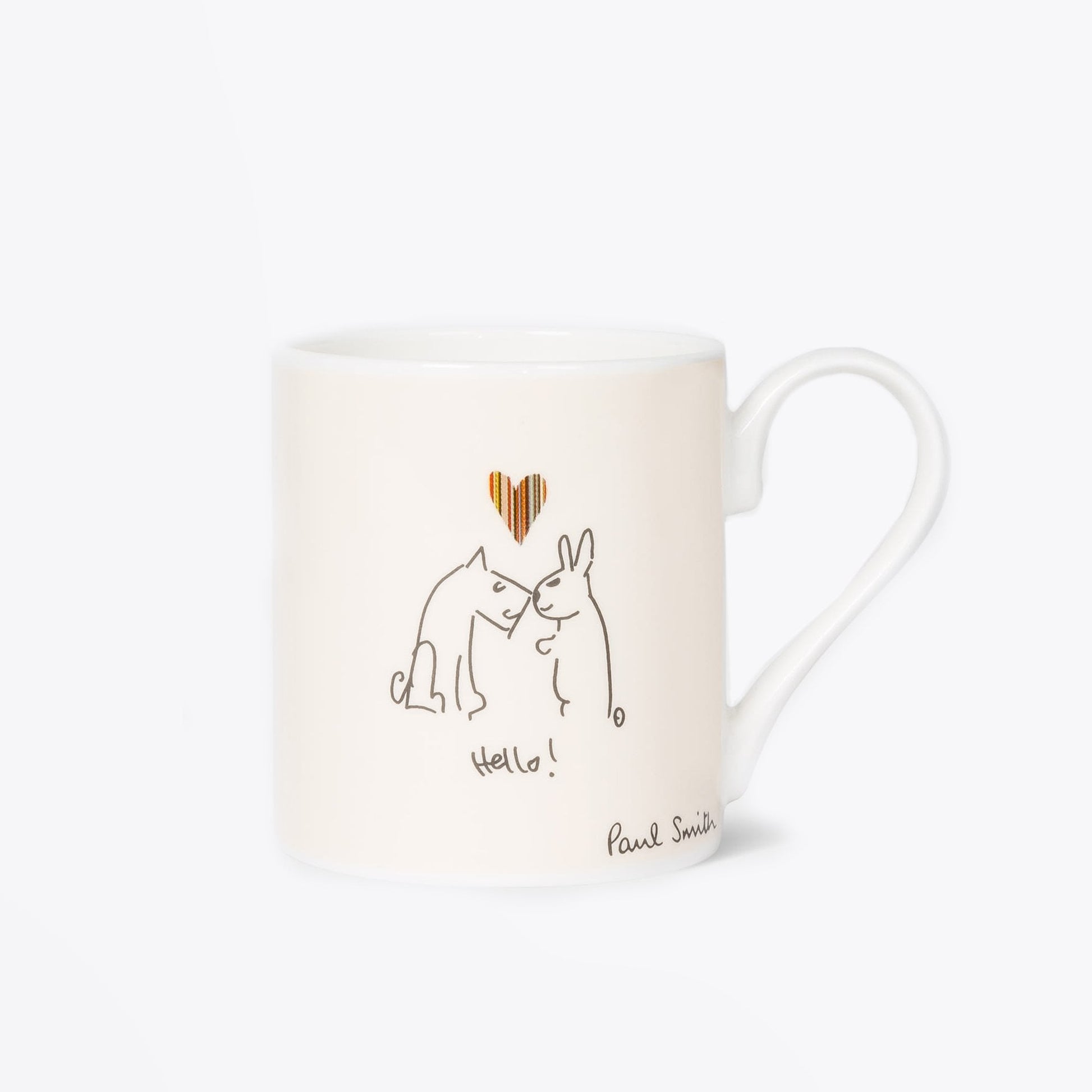 Paul Smith is a distinguished British designer who is renowned for his creative aesthetic, which combines tradition and modernity. This Paul Smith 'Dog and Rabbit' print bone china mug featuring a signature stripe heart, Hello! motif and Paul Smith signature at the bottom. A treat for any coffee or tea lover!