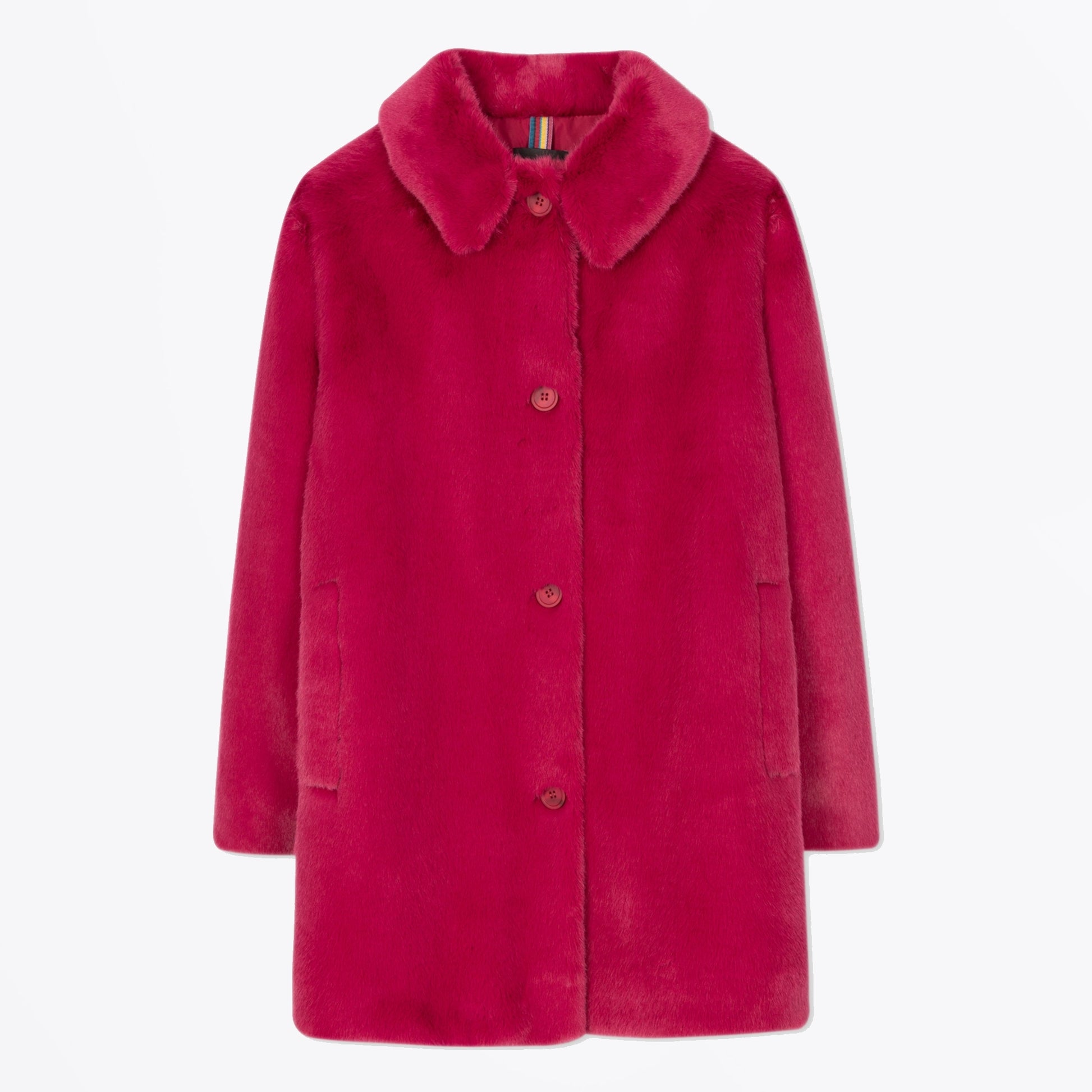 Paul Smith is a distinguished British designer who is renowned for his creative aesthetic, which combines tradition and modernity. A great statement coat for your winter wardrobe, this  jacket is crafted in a beautiful raspberry pink shade, and features tonal buttons, two side pockets, with soft pointed tip collar and signature stripe coat hook. Style this jacket with a plain knit for a winter look.