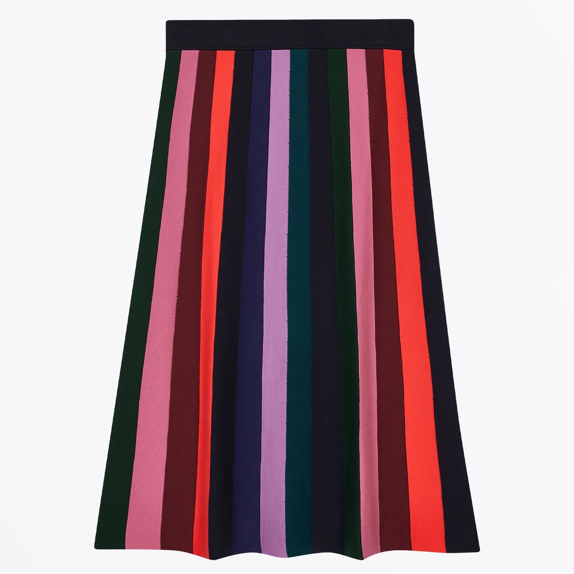 Paul Smith is a distinguished British designer who is renowned for his creative aesthetic, which combines tradition and modernity. Update your wardrobe staples with this option from Paul Smith. This Knitted skirt features a midi length crafted in soft cotton. It includes a multi coloured vertical stripe design. Wear this with a Paul Smith sweater and some Veja trainers.