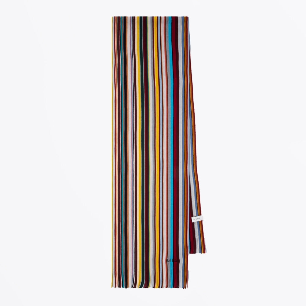 Paul Smith is a distinguished British designer who is renowned for his creative aesthetic, which combines tradition and modernity. Update your wardrobe staples with this option from Paul Smith. This scarf is crafted from soft merino wool for a comfortable texture, it also features the signature Paul Smith stripe throughout. This scarf is perfect for any occasion and outfit.