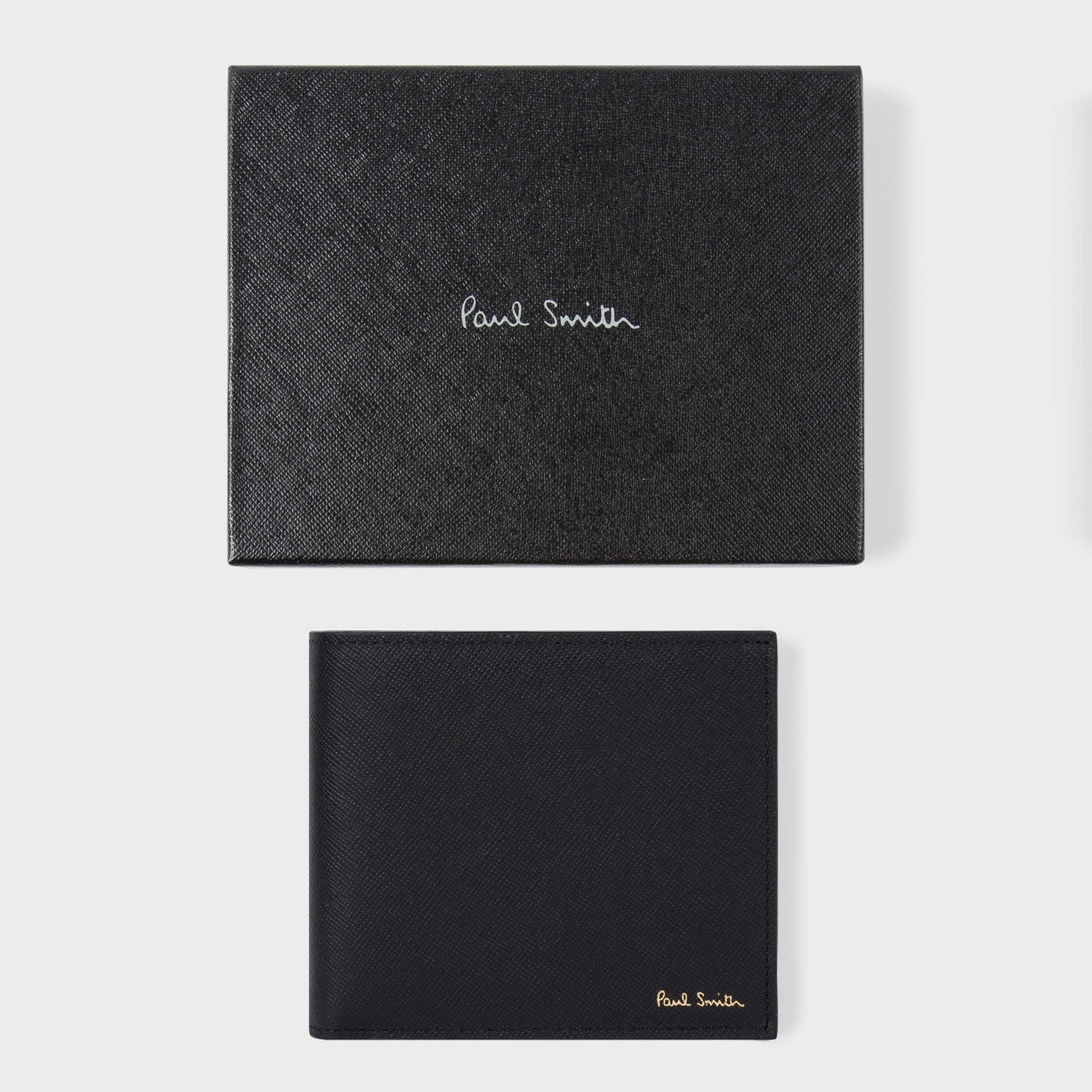Paul Smith is a distinguished British designer who is renowned for his creative aesthetic, which combines tradition and modernity. This Paul Smith leather wallet features a textured ‘Mini Kings Cross’ print interior. This high quality wallet has been finished with four business or credit card slots and a press-stud fastening coin pouch, a large compartment for notes, two small compartments for extra storage and foil-embossed Paul Smith signature on the exterior. It is presented in a black gift box.