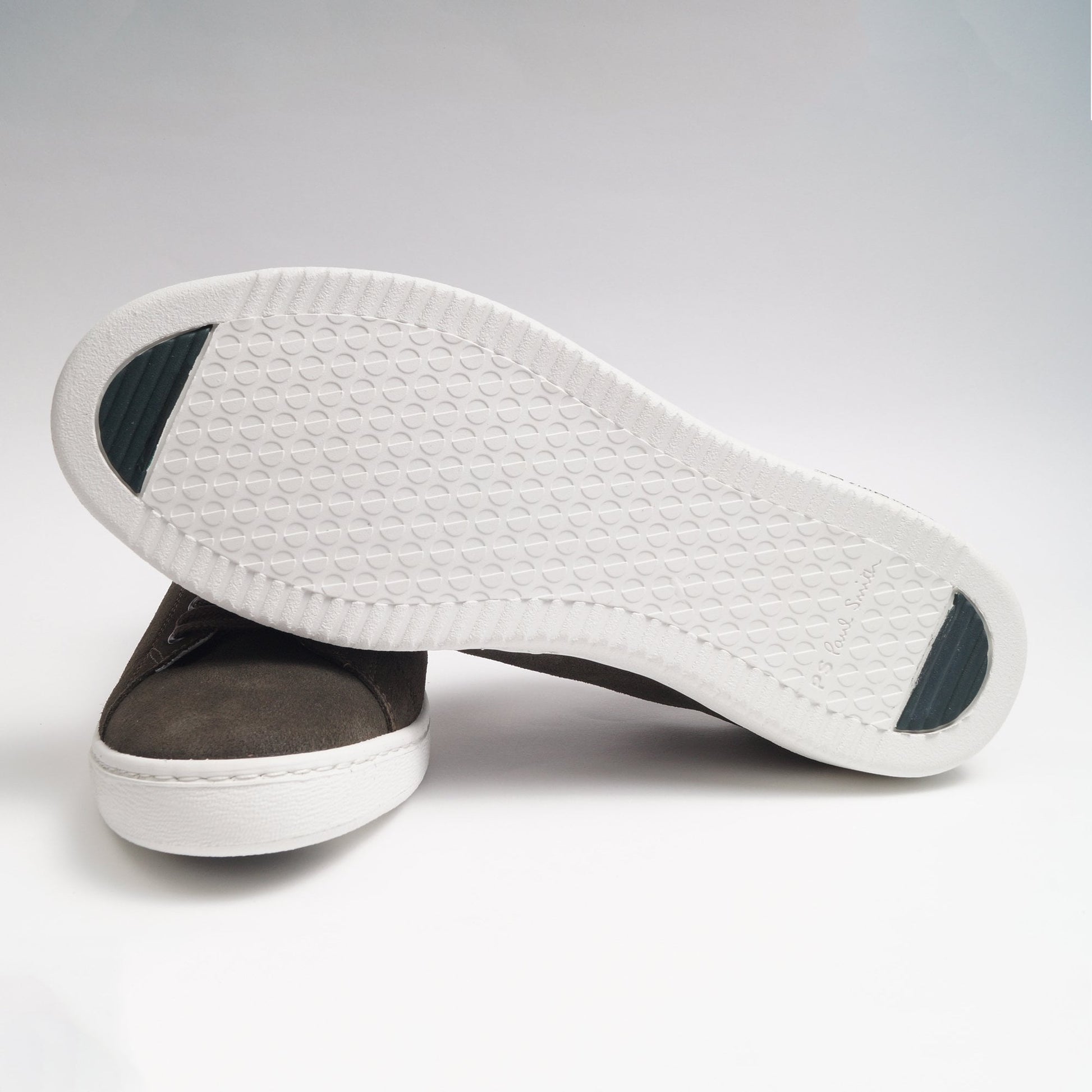 Paul Smith is a distinguished British designer who is renowned for his creative aesthetic, which combines tradition and modernity. Crafted from smooth suede leather, these sleek olive green 'Miyata' trainers are adorned with Paul Smith's signature tab and raised white heel logos. Also featured is a contrasting dark navy tongue and cushioned footbed for supreme comfort.