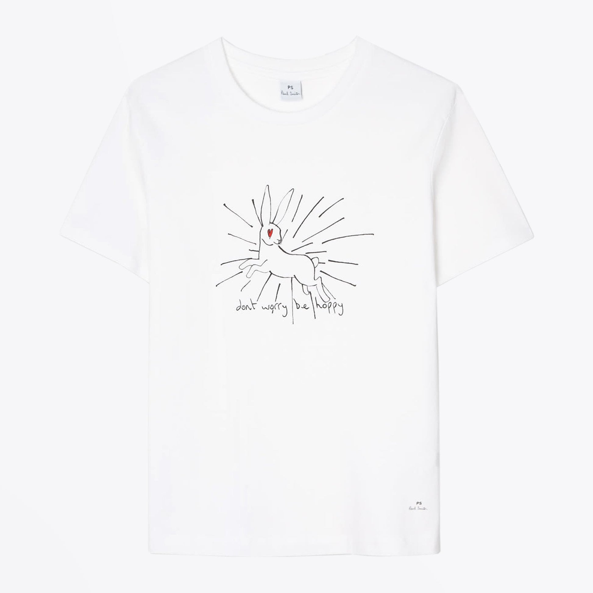 Paul Smith is a distinguished British designer who is renowned for his creative aesthetic, which combines tradition and modernity. Classic with a hint of eclectic is the key element of the company. Constructed from a soft, premium organic cotton, this white short-sleeve t-shirt boasts a ‘Be Hoppy’ sketch motif on the front. Cut for a slightly boxy fit this t-shirt would be styled perfectly with jeans or tailored trousers for a relaxed everyday outfit.