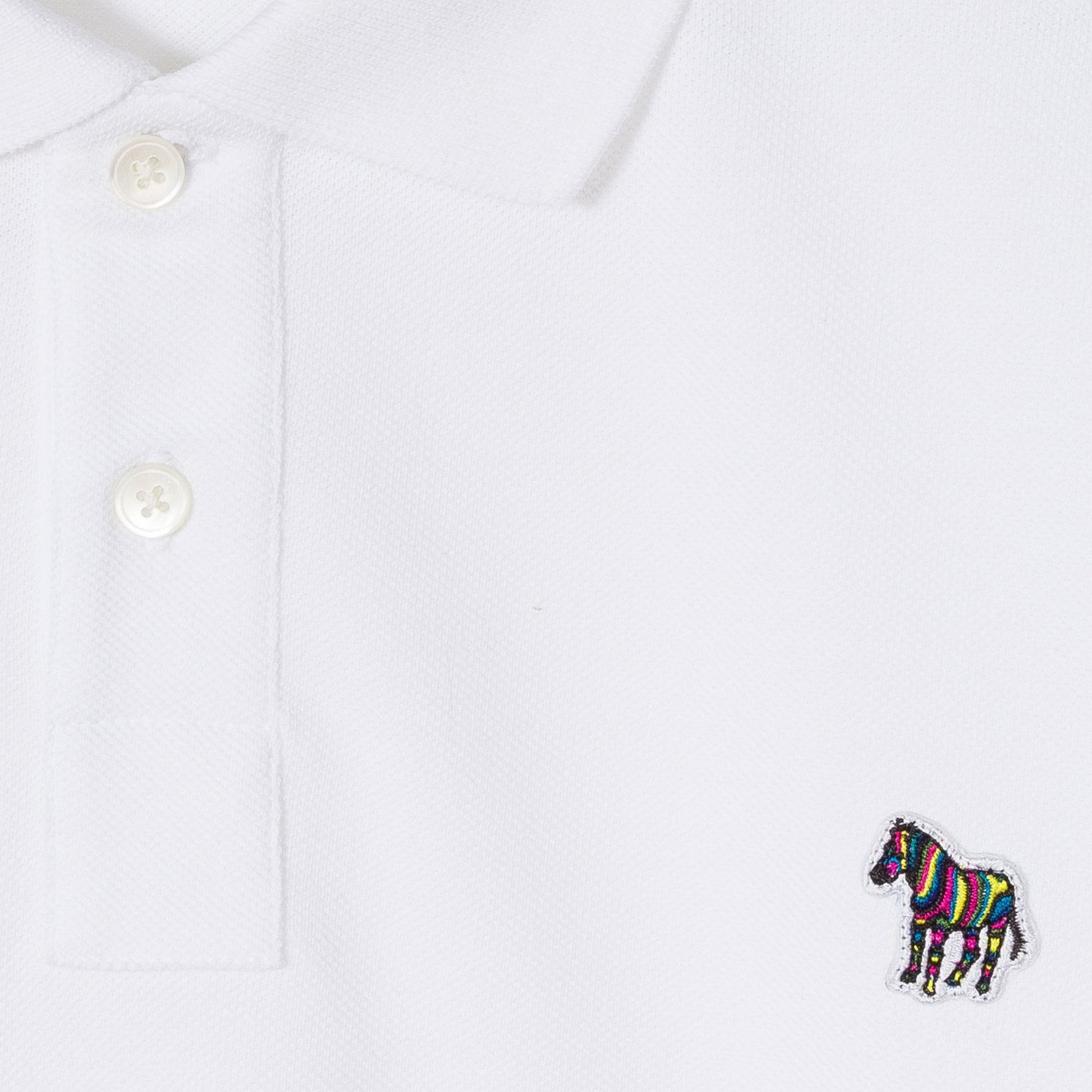 Paul Smith is a distinguished British designer who is renowned for his creative aesthetic, which combines tradition and modernity. Constructed from 100% organic cotton-piqué this dark navy polo shirt features the classic Zebra logo in an updated vibrant 'Sports Stripe' pattern, on the chest. Finishing features include two-button closure with iridescent shell buttons, ribbed collar and cuffs and split side vents. Plain back.