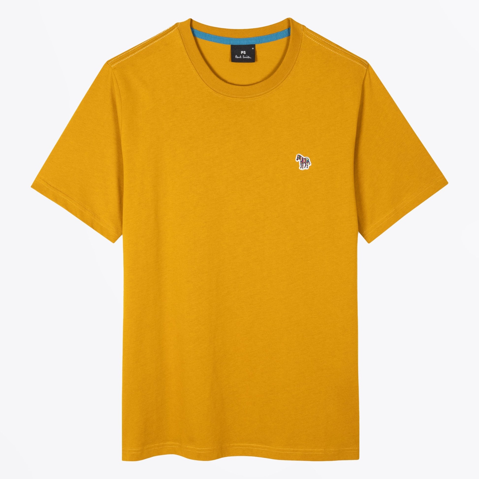 Paul Smith is a distinguished British designer who is renowned for his creative aesthetic, which combines tradition and modernity. Add a touch of luxury to your new season wardrobe with a classic Paul Smith tee. Crafted from organic cotton in a golden yellow shade, this tee features the iconic Paul Smith zebra logo appliqued onto the breast of the tee. This t-shirt has a ribbed crew neck and short sleeves. Wear this t-shirt with a pair of straight leg jeans and some designer trainers.