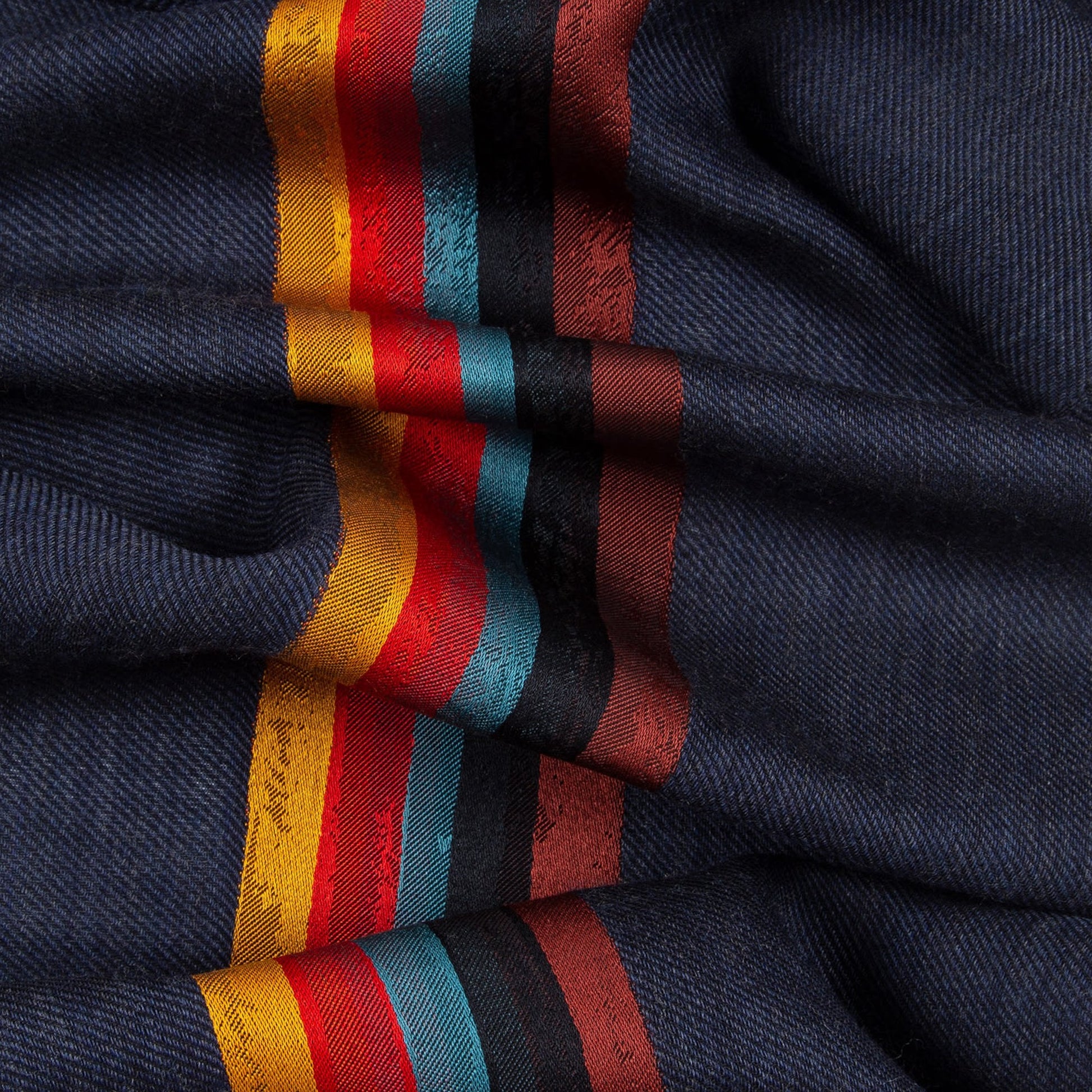 - 'Painted Stripe' Wool-Silk Scarf - Navy