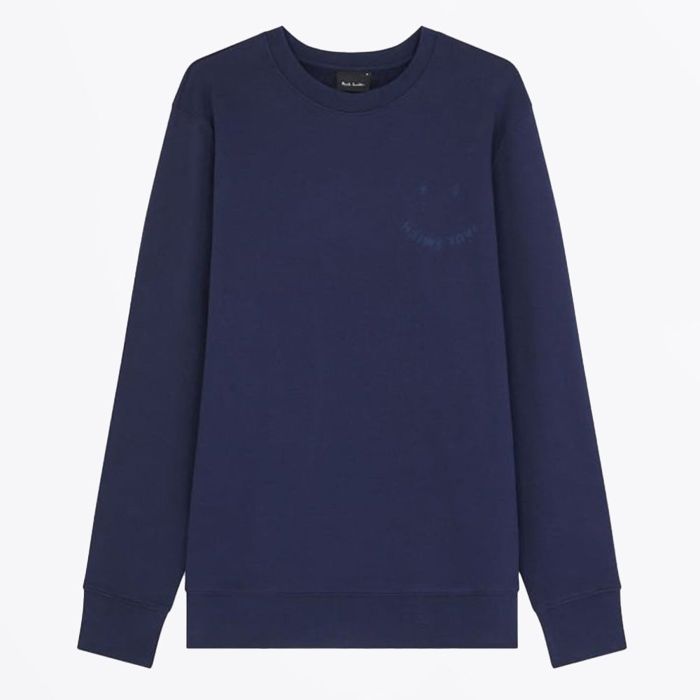 Paul Smith is a distinguished British designer who is renowned for his creative aesthetic, which combines tradition and modernity. Update your wardrobe staples with this option from Paul Smith. This sweater features a ribbed crew neckline, long sleeves, ribbed cuffs and a playful PS Happy logo on the front. Wear this sweater with a pair of Jacob Cohen jeans and Paul Smith trainers.