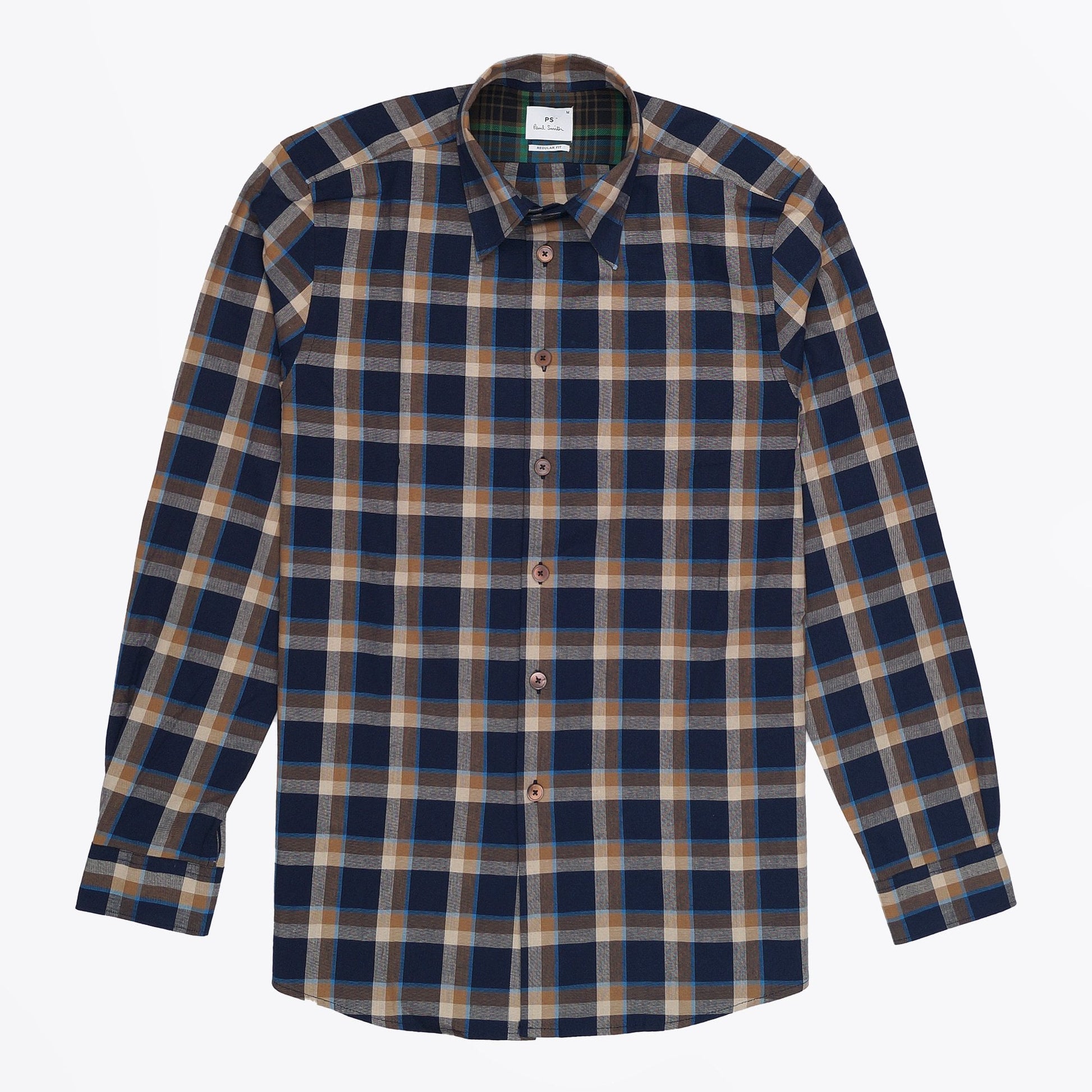 Paul Smith is a distinguished British designer who is renowned for his creative aesthetic, which combines tradition and modernity. A great way to add a classic pattern from a classic brand, this shirt is woven into a checked material in navy, camel and off-white tones, and has a button down fastening, buttoned cuffs and a collared neckline. Wear this shirt with a pair of Handpicked jeans and some Paul Smith trainers for a great elevated casual look.