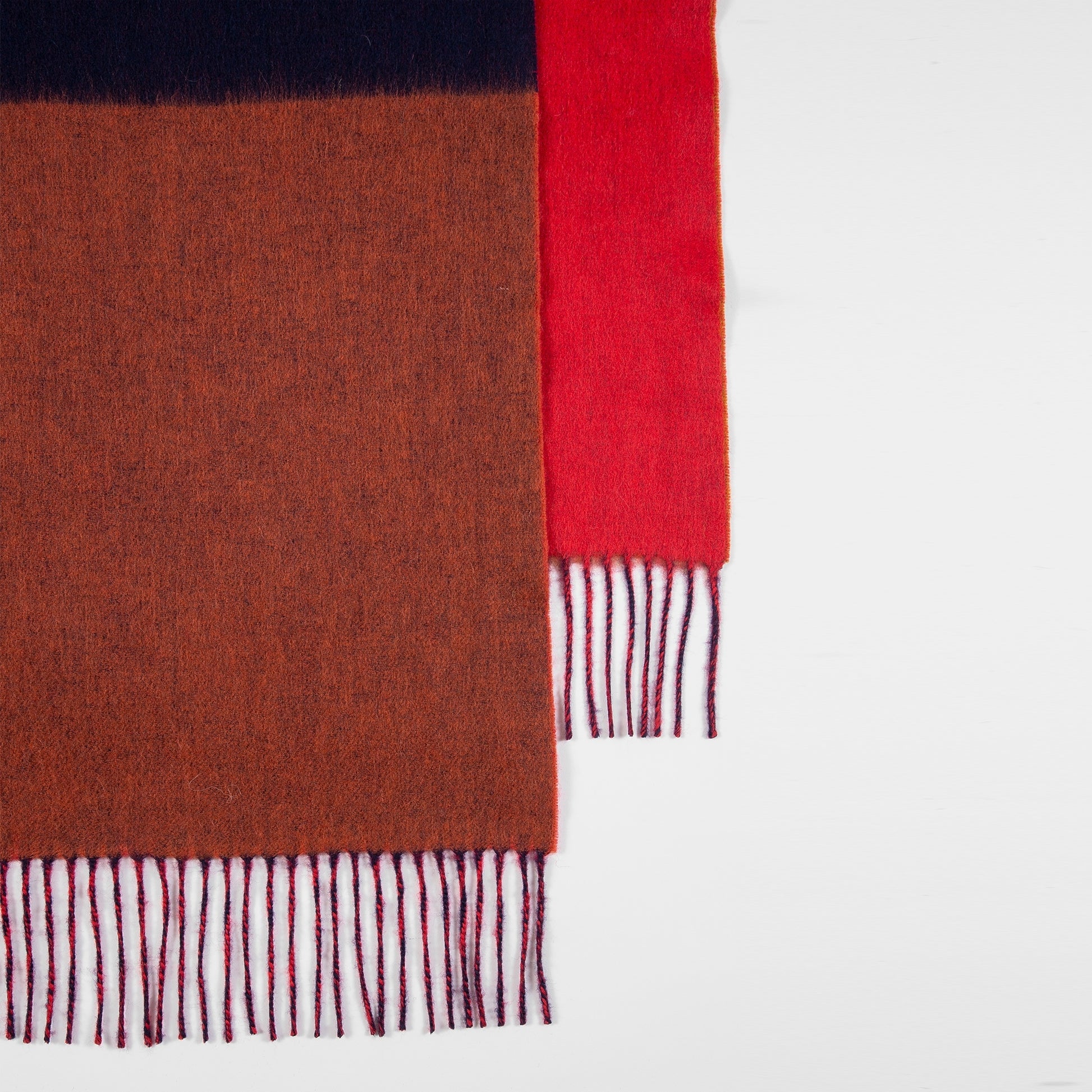 Paul Smith is a distinguished British designer who is renowned for his creative aesthetic, which combines tradition and modernity. Classic with a hint of eclectic is the key element of the company. Expertly crafted from a luxuriously soft lambswool and cashmere blend, this scarf is an essential accessory that will keep you warm for many seasons to come. This premium scarf has a navy and 'Artist Stripe' reversible design. Finished with tasselled ends.