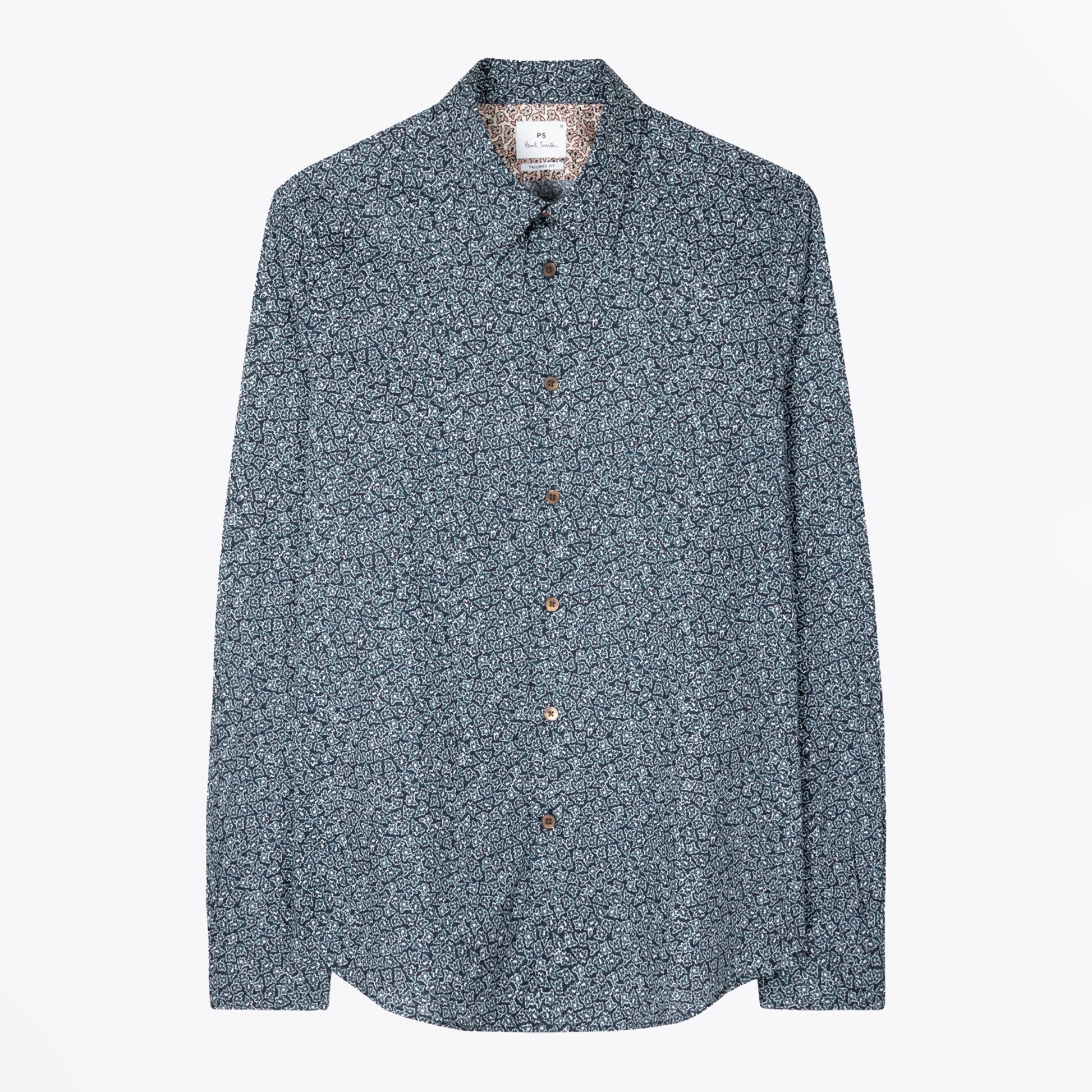 Paul Smith is a distinguished British designer who is renowned for his creative aesthetic, which combines tradition and modernity. Add some interesting print into your shirt rotation with this Paul Smith shirt. This shirt features an intricate floral print on a navy base, with a contrasting inner cuff and inner yolk fabric. This shirt also has a button down fastening with buttoned cuffs and a curved hem. Style this shirt. With a Universal Works jacket and some designer denim.