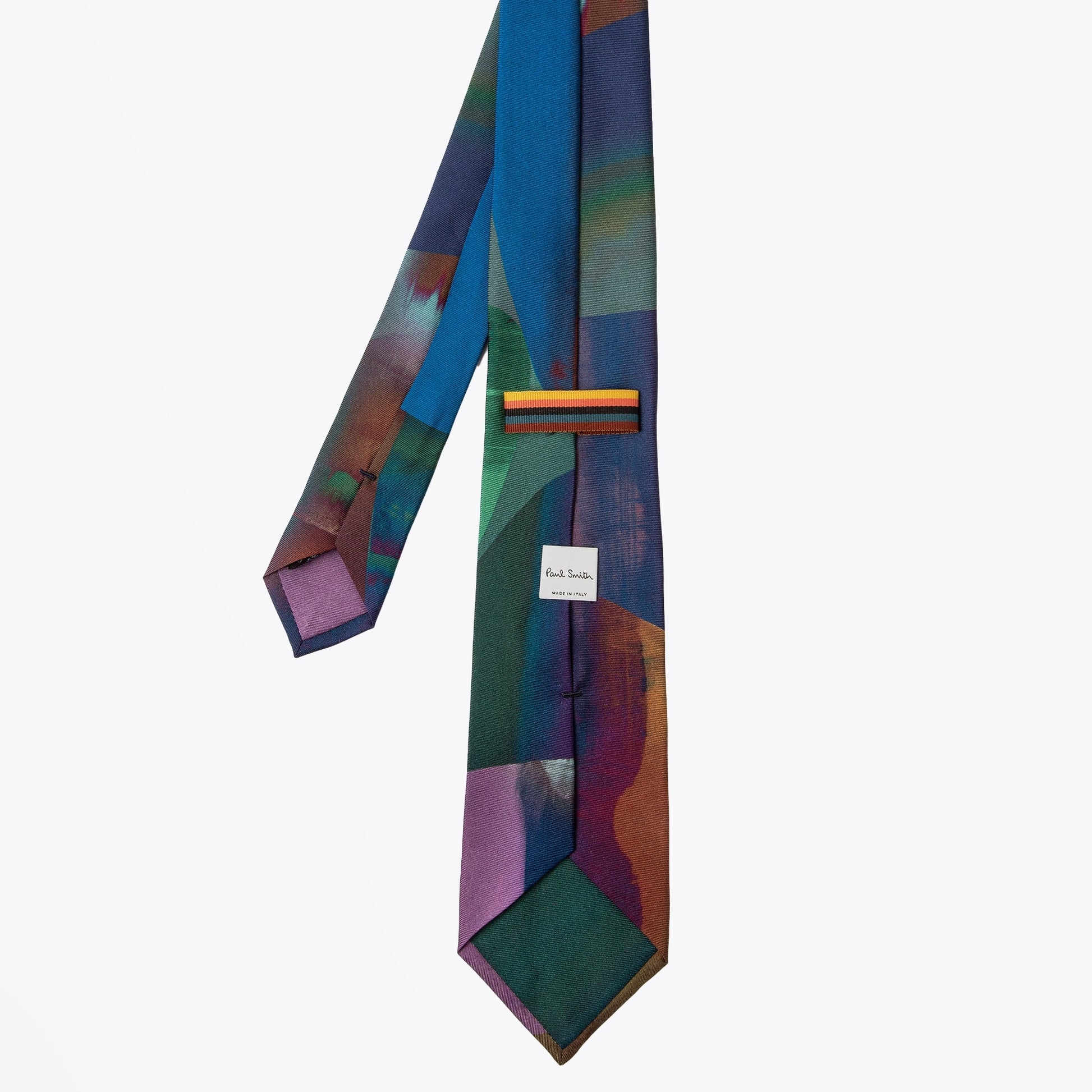 Paul Smith is a distinguished British designer who is renowned for his creative aesthetic, which combines tradition and modernity. Add whimsy to your more formal events, with this silk abstract tie from Paul Smith. Crafted in Italy from a premium silk material, this tie features an abstract print in darker shades of deep blues, greens, and burgundy. This shirt has an ‘Artist Stripe’ tie loop, and the Paul Smith logo appliqued on the back. Perfect to treat yourself, or a designer brand lover in your life.