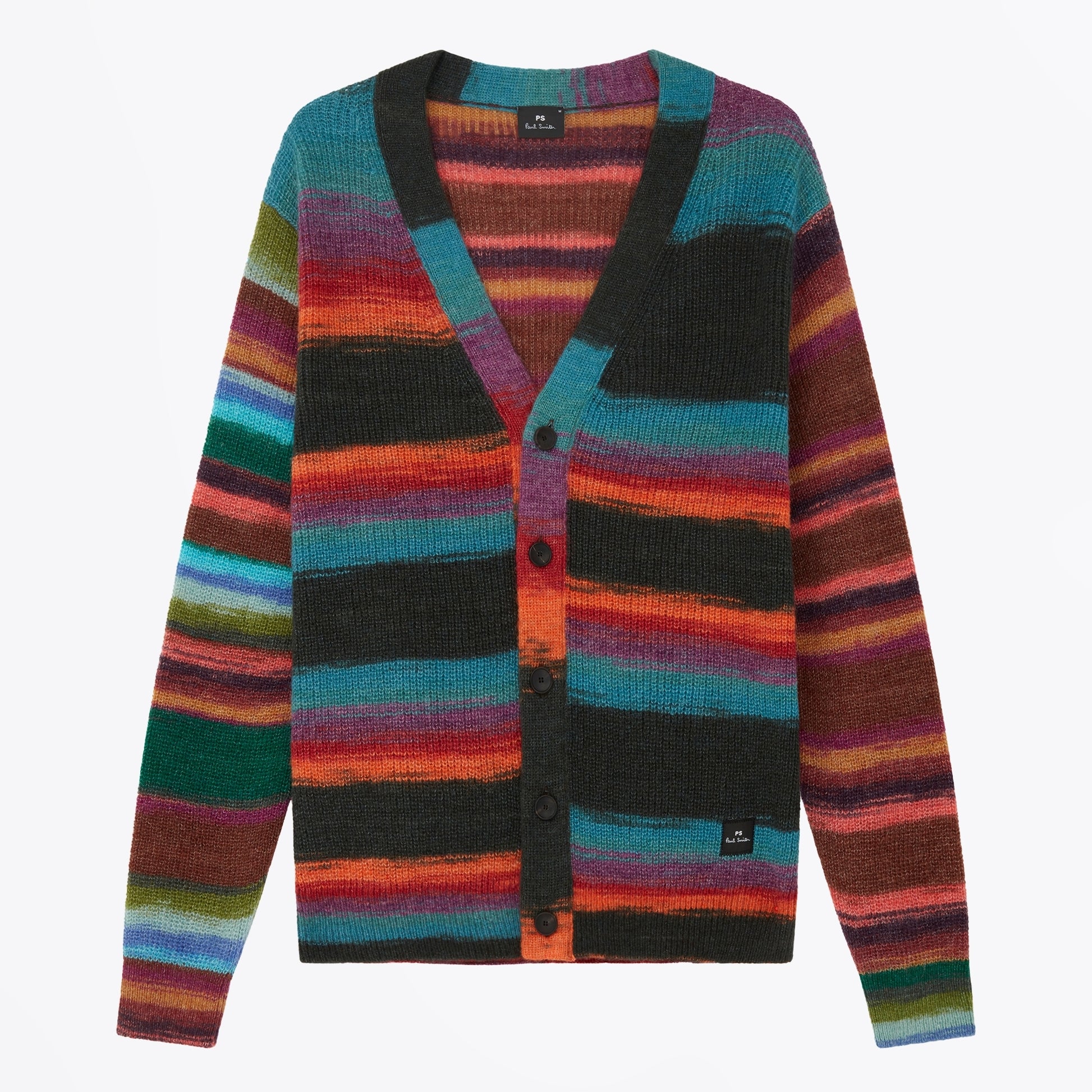 Paul Smith is a distinguished British designer who is renowned for his creative aesthetic, which combines tradition and modernity. Refine your knitwear with a colourful Paul Smith option this season. Featuring a multicoloured striped design, this cardigan has a v-neckline, with a button-down fastening, in a wonderfully soft material. Wear this cardiganwith your favourite pair of jeans and some Paul Smith trainers for a great outfit for a night out.