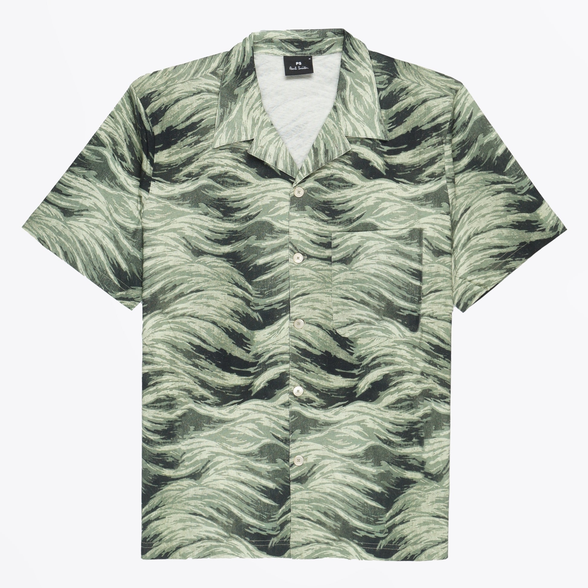 Paul Smith is a distinguished British designer who is renowned for his creative aesthetic, which combines tradition and modernity. Giving your shirts a quirky twist, this green top is crafted in an organic cotton material, with a wave print, a collared neckline, short sleeves, button-down fastening, and a breast patch pocket. Wear this shirt  with a pair of Nudie Jeans and your favourite trainers.