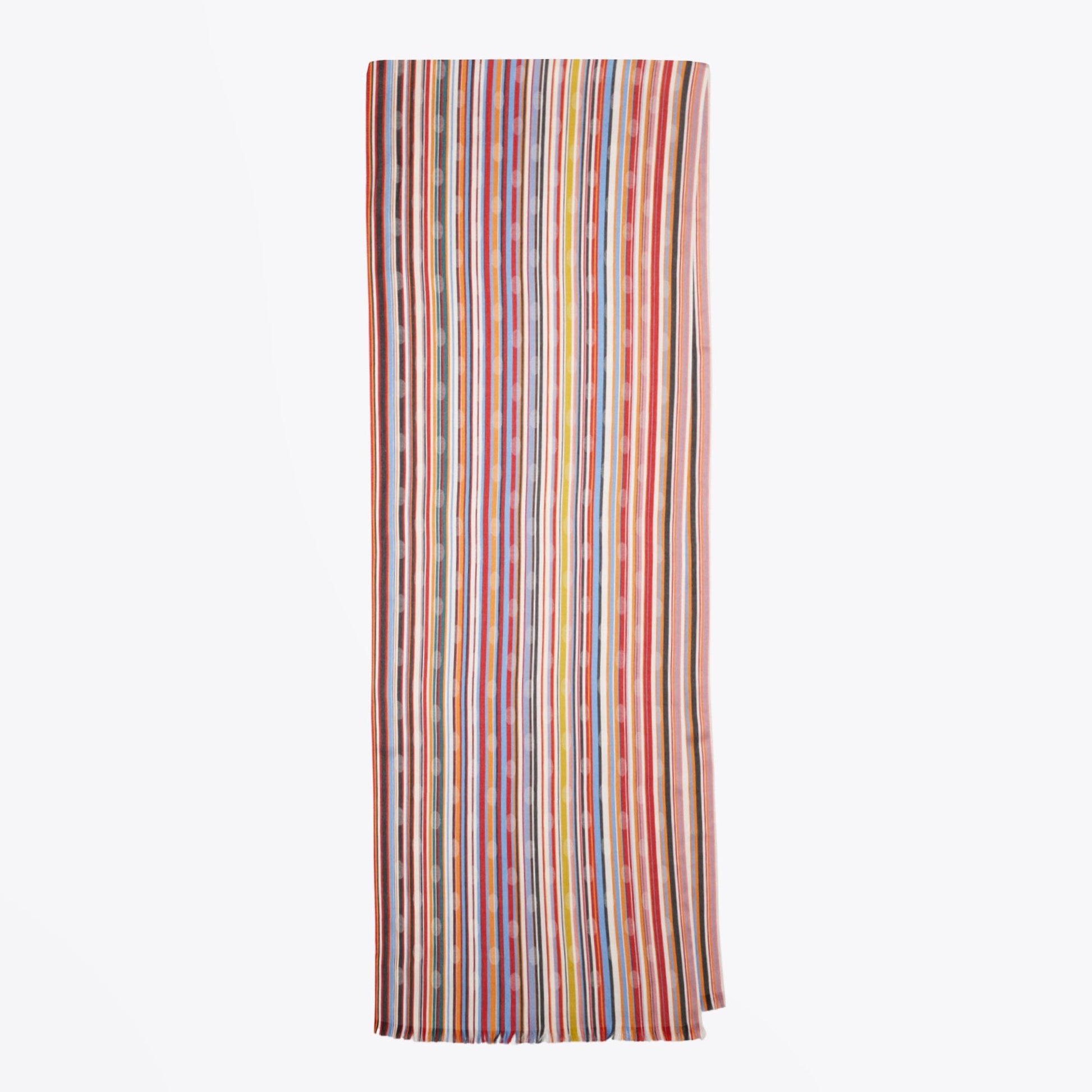 Paul Smith is a distinguished British designer who is renowned for his creative aesthetic, which combines tradition and modernity. Super soft cotton blend scarf. This vibrant signature stripe and polka dot scarf is finished with tasselled ends and raw edges. Accessorise your look with this stylish and cosy scarf.