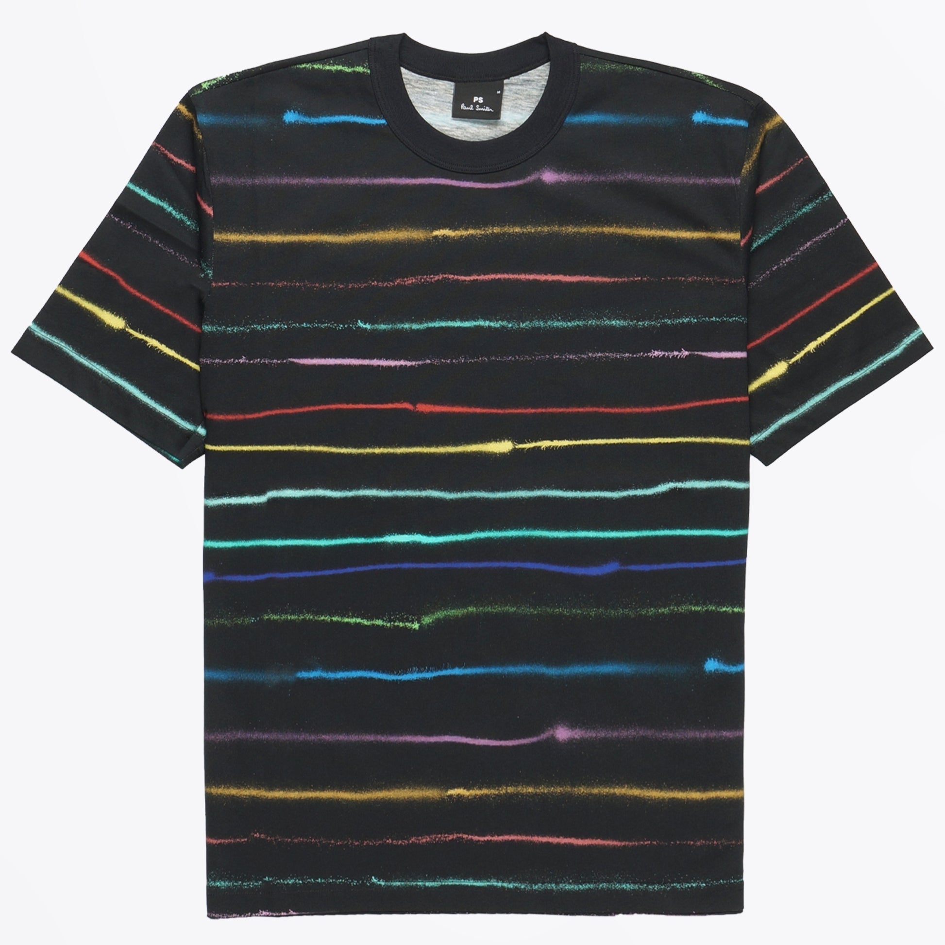 Paul Smith is a distinguished British designer who is renowned for his creative aesthetic, which combines tradition and modernity. Update your wardrobe staples with this option from Paul Smith. This t-shirt features a crew neckline, short sleeves and a horizontal multi coloured paint stripe throughout. Wear this t-shirt with a pair of Jacob Cohen jeans and Paul Smith trainers.