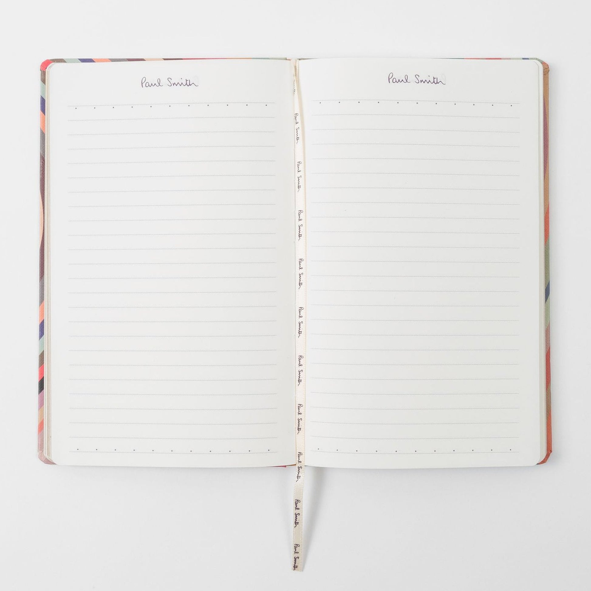 Paul Smith is a distinguished British designer who is renowned for his creative aesthetic, which combines tradition and modernity. This Paul Smith lined notebook features a Paul Smith signature page header, a cream Paul Smith signature ribbon marker and gold-foil page edging.