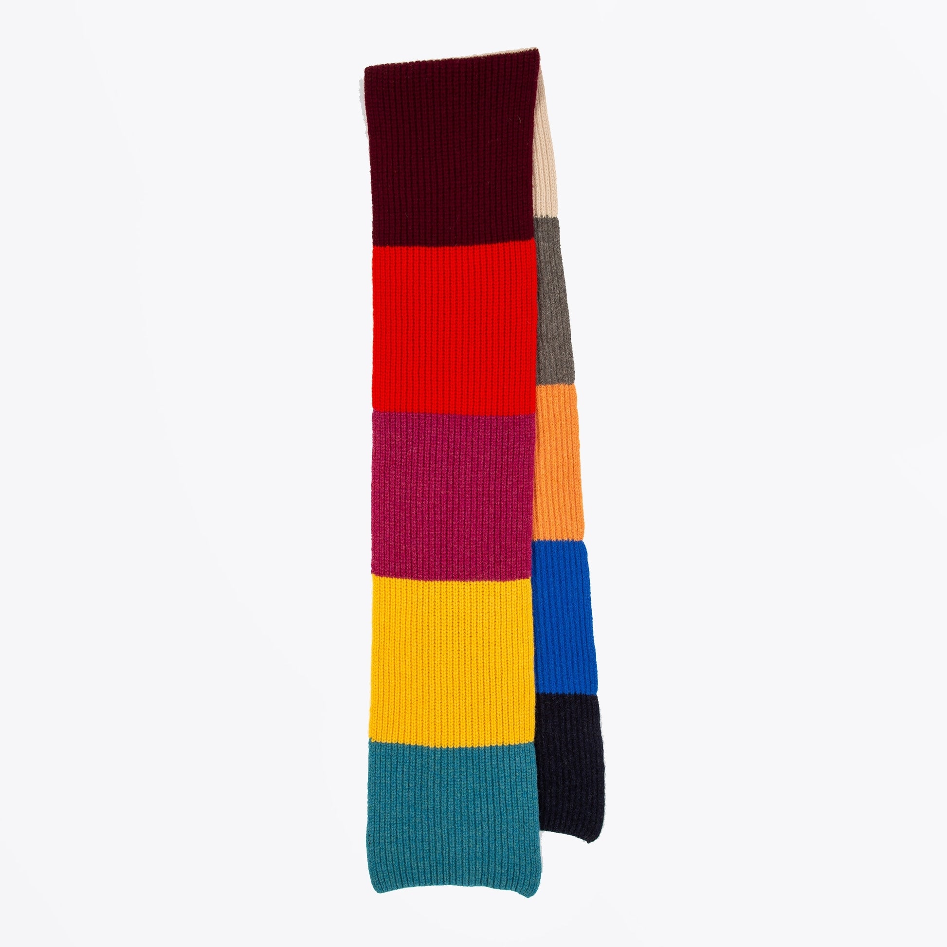 Paul Smith is a distinguished British designer who is renowned for his creative aesthetic, which combines tradition and modernity. Classic with a hint of eclectic is the key element of the company. Expertly crafted from a luxuriously soft wool, this scarf is an essential accessory that will keep you warm for many seasons to come. This premium scarf has a bold 'Artist Stripe' design with a ribbed finish, creating the perfect transitional piece to keep you warm in the changing weather.