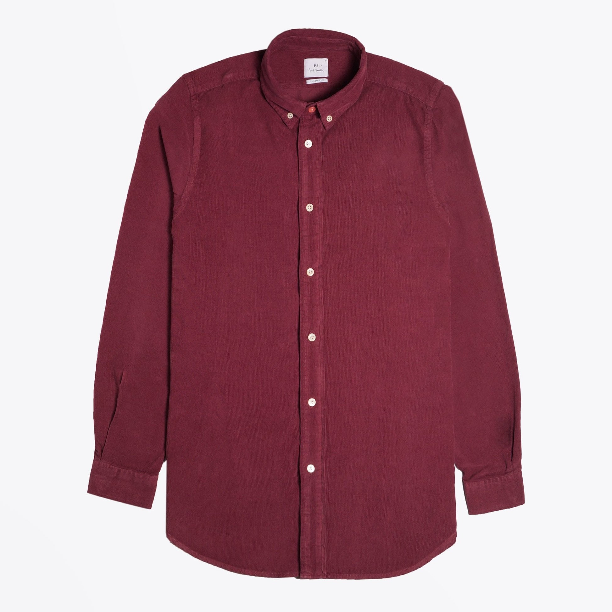 - Tailored-Fit Corduroy Shirt - Burgundy
