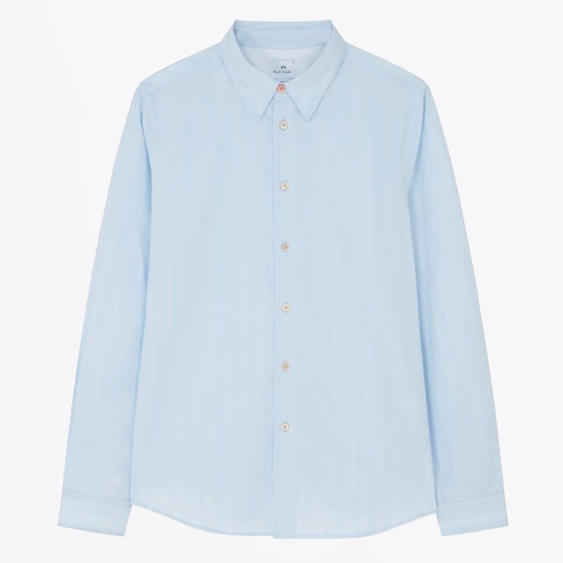 Paul Smith is a distinguished British designer who is renowned for his creative aesthetic, which combines tradition and modernity. Update your wardrobe staples with this option from Paul Smith. This light blue shirt features a stripe detail, collared neckline, different coloured button up fastening and long sleeves. Wear this with a pair of designer trousers and designer shoes.