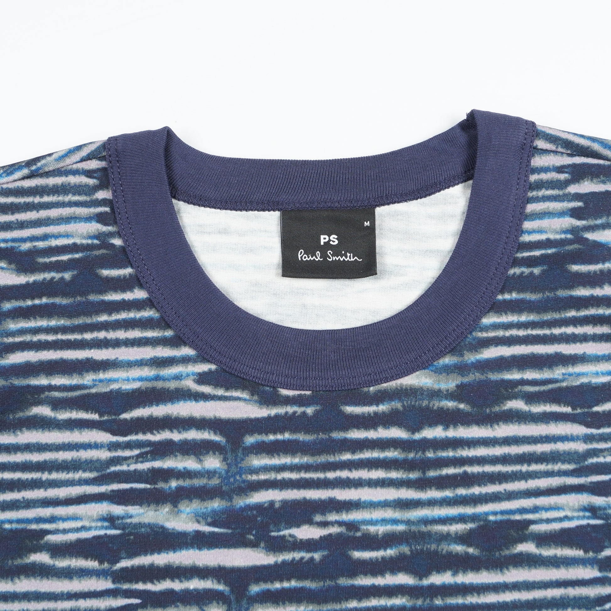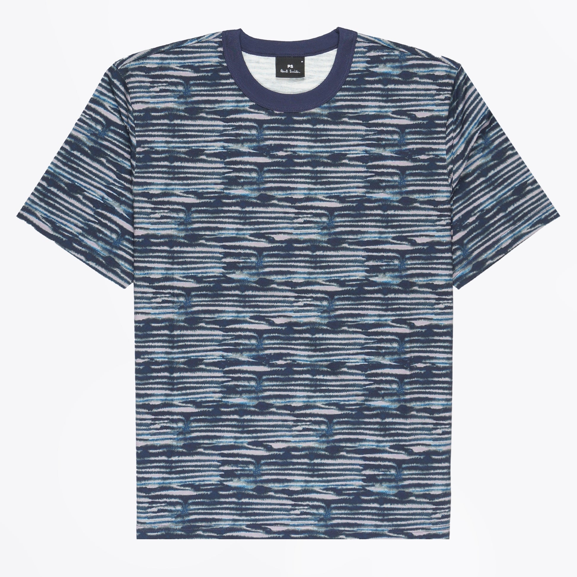 Paul smith is a unique and established British designer who’s known for his creative aesthetic, which moulds tradition and modernity to create contemporary pieces. Upgrade your summer wardrobe with this tie dye designed t – shirt with shade of navy, blue and pink blended throughout it. This shirt is short sleeved with a crew neckline and a branded Paul Smith patch on the hem. Wear this t – shirt under a Universal works jacket and pair of your Hoff trainers.