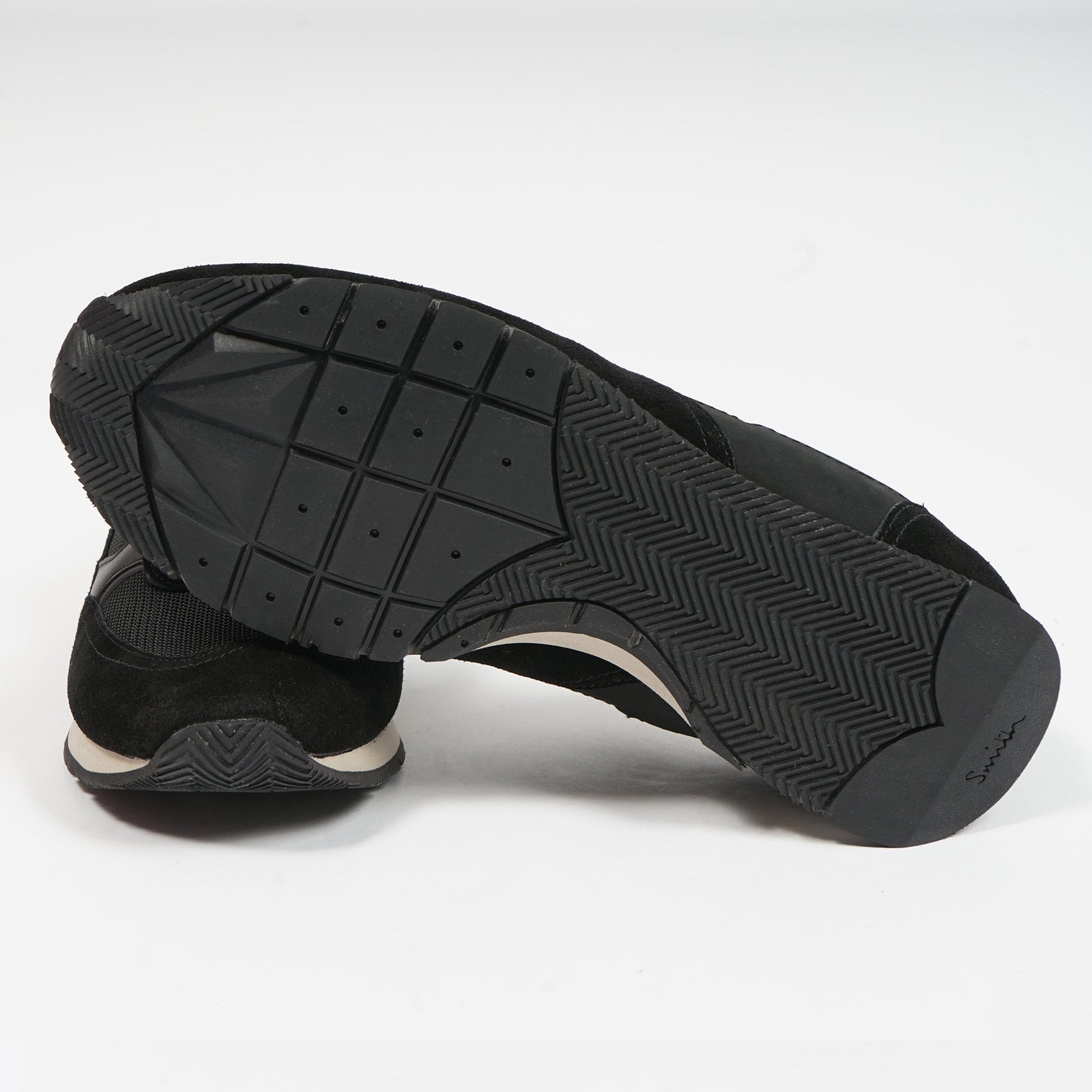Paul Smith is a distinguished British designer who is renowned for his creative aesthetic, which combines tradition and modernity. Crafted from a mix of black upper materials, with a rubber sole. With contrasting mesh materials, this shoe features the iconic Paul Smith logo on the side of the shoes and a colourful striped heel tab. Wear these shoes as a way to add some contemporary design to any outfit. Pair these shoes with some Universal Works trousers and a Wax London shirt.