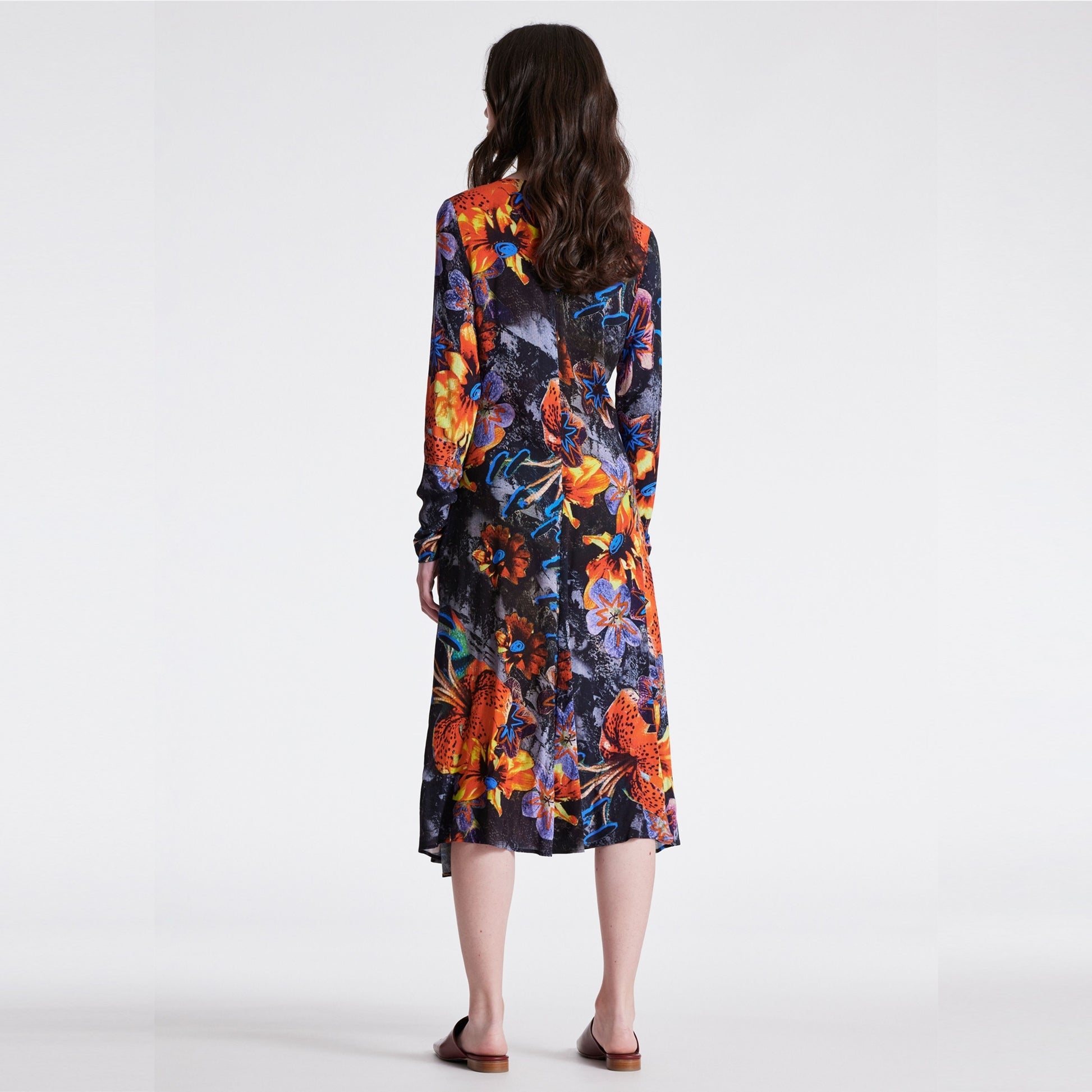 Paul Smith is a distinguished British designer who is renowned for his creative aesthetic, which combines tradition and modernity. Made in Portugal, this statement dress is cut for a flattering midi length and features our seasonal 'Winter Hawaiian' print all-over. An ideal piece for the transitioning weather, this vibrant long-sleeve dress is finished with a V neckline and gathered cuff details.
