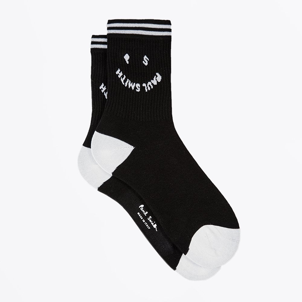 Paul Smith is a distinguished British designer who is renowned for his creative aesthetic, which combines tradition and modernity. Italian made sock crafted in high quality cotton-blend for increased resistance and added colour depth, these turquoise socks feature a white 'Happy' pattern and a white heel and toe. These socks have been finished with a white striped trim and are ribbed from the ankle up.