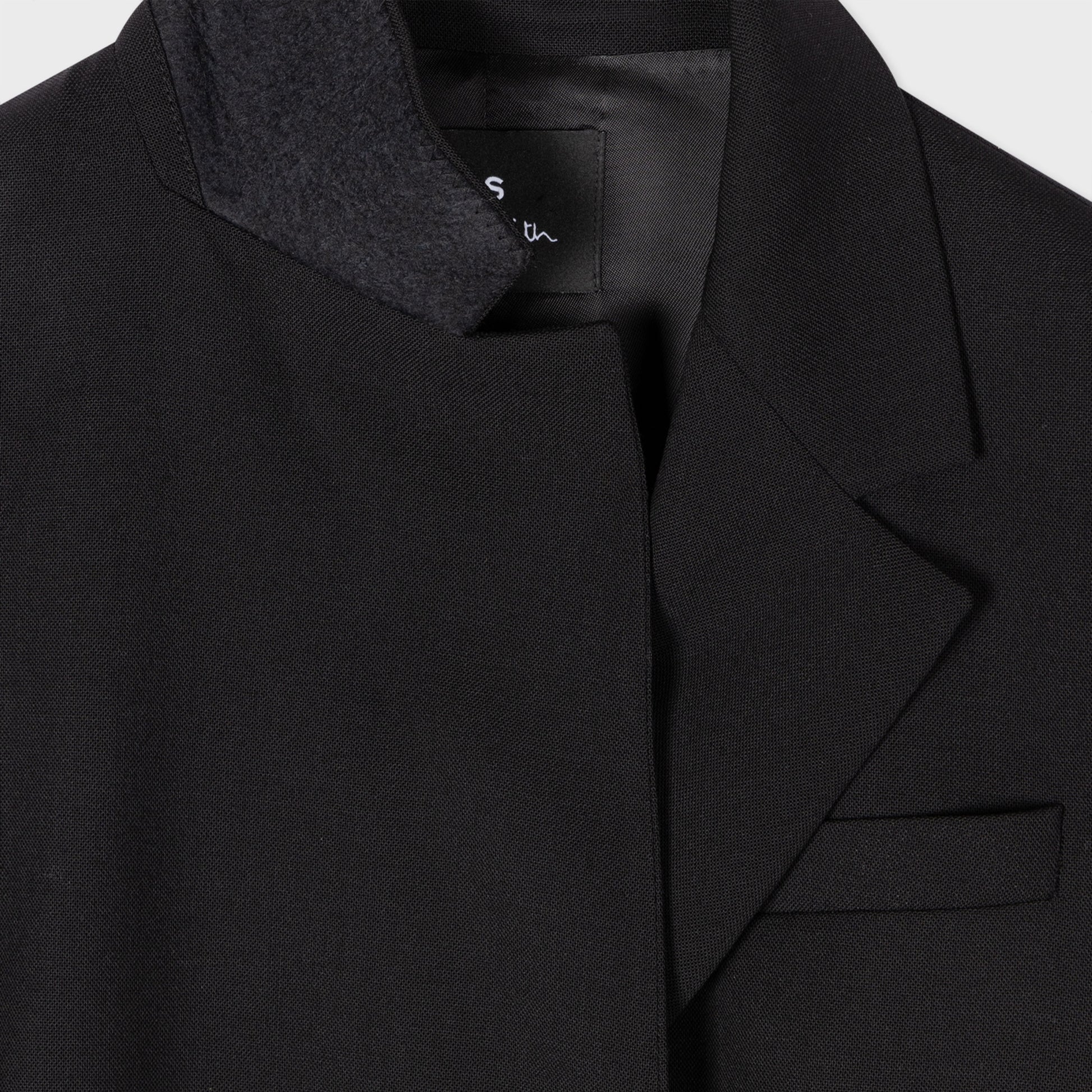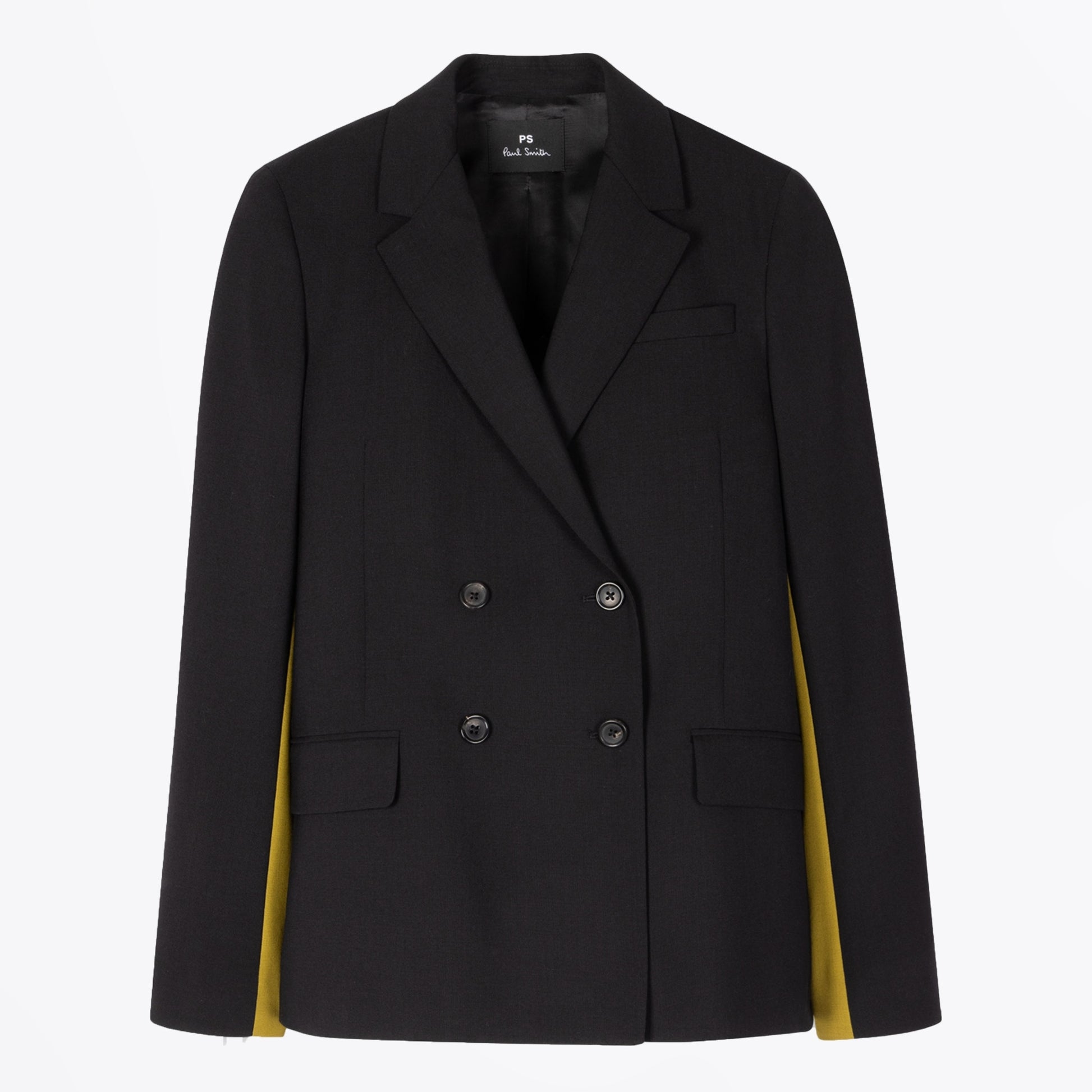 Paul Smith is a distinguished British designer who is renowned for his creative aesthetic, which combines tradition and modernity. Update your wardrobe staples with this option from Paul Smith. This black blazer features a double breast design, flap pockets, casual collared neckline, buttoned cuffs, with a contrasting inner sleeve colour for a pop of vibrance. Wear this blazer with the matching Paul Smith trousers and a pair of designer shoes.