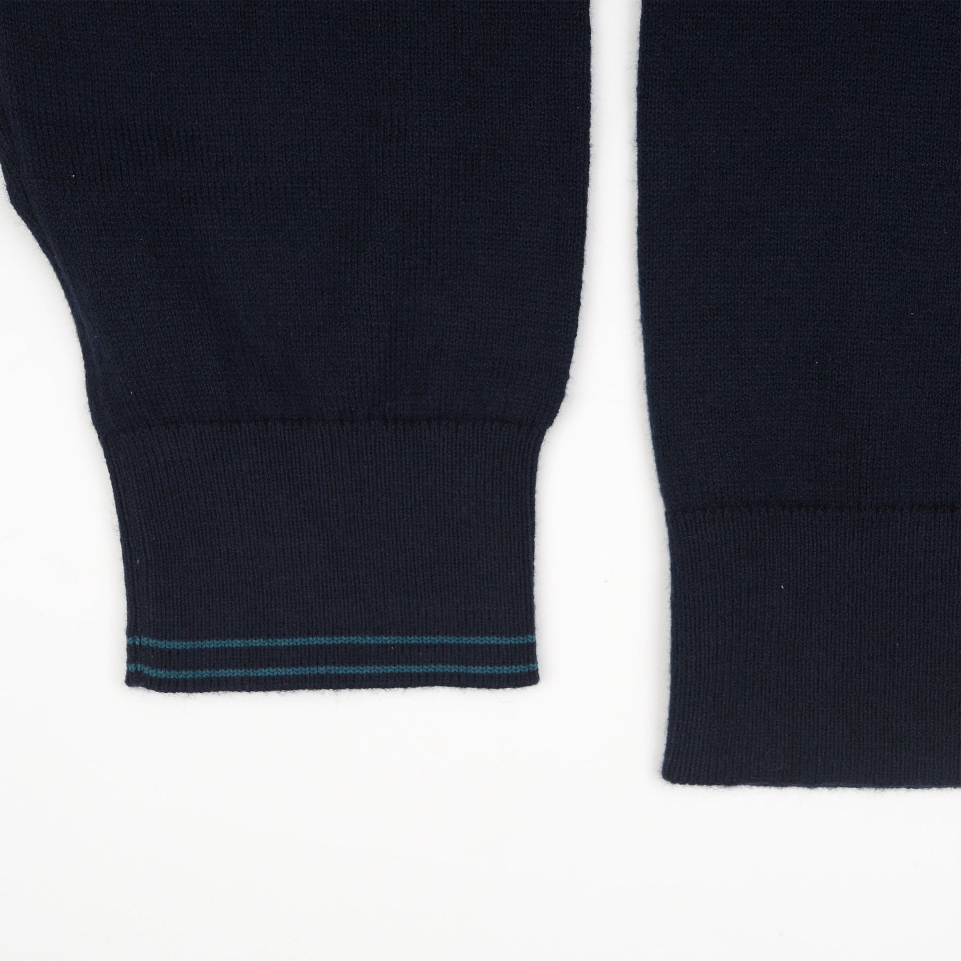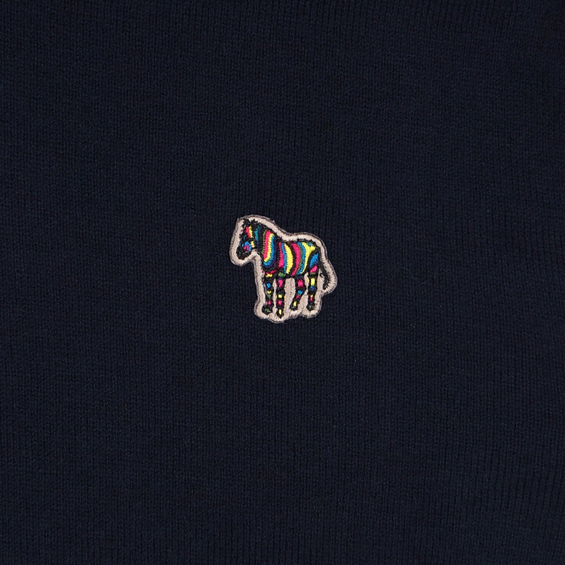 Paul Smith is a distinguished British designer who is renowned for his creative aesthetic, which combines tradition and modernity. Update your mid-season basics with some luxury branding, with this Paul Smith pullover. Featuring a half-zip high neckline, in silver hardware, this soft knitted pullover has the iconic Paul Smith zebra logo appliqued on the chest. This jumper also has a ribbed hem, ribbed cuffs with a green stripe detail, and a ribbed neckline. Wear this jumper with a pair of Handpicked jeans and some Paul Smith trainers.