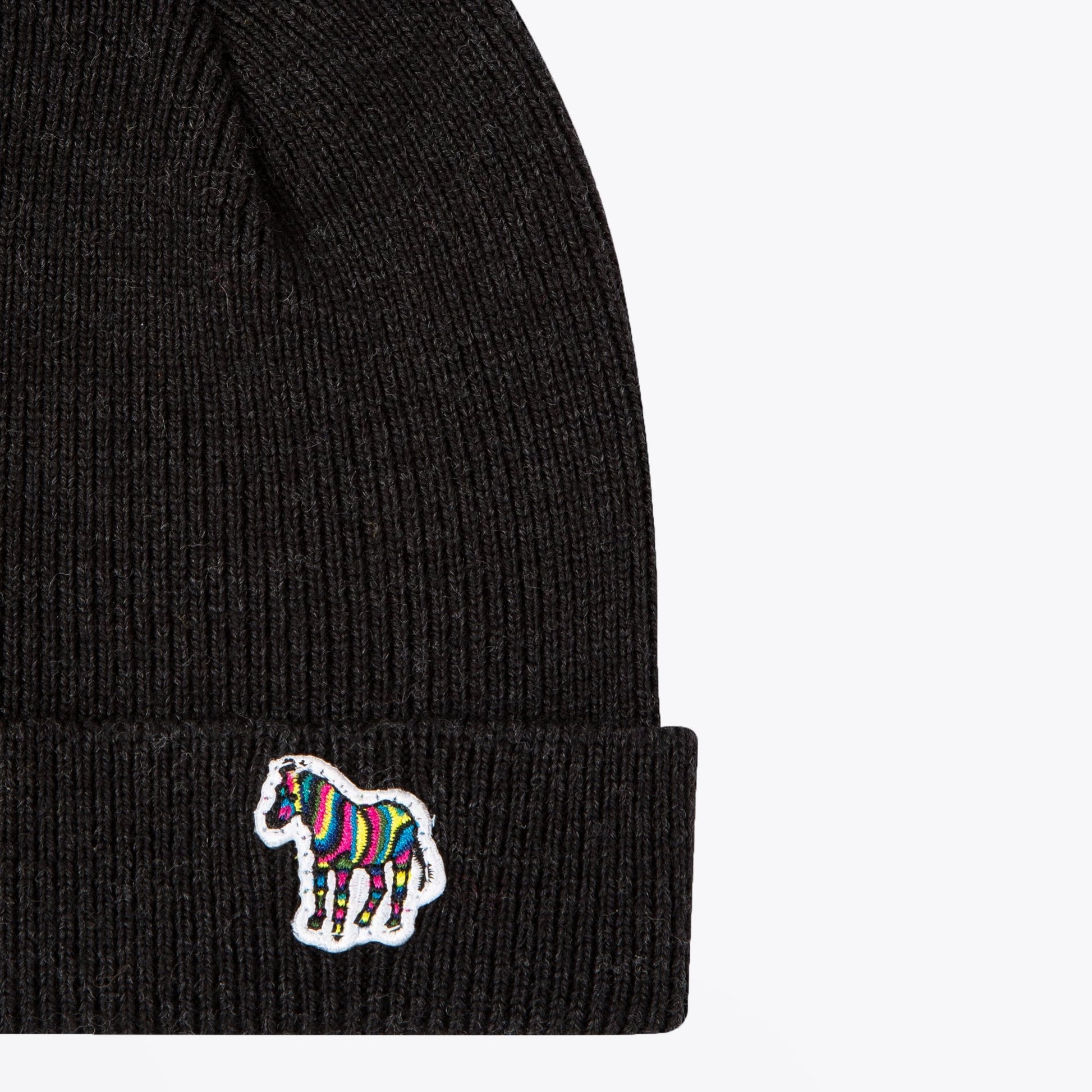 - 'Zebra' Logo Ribbed Beanie Hat - Black