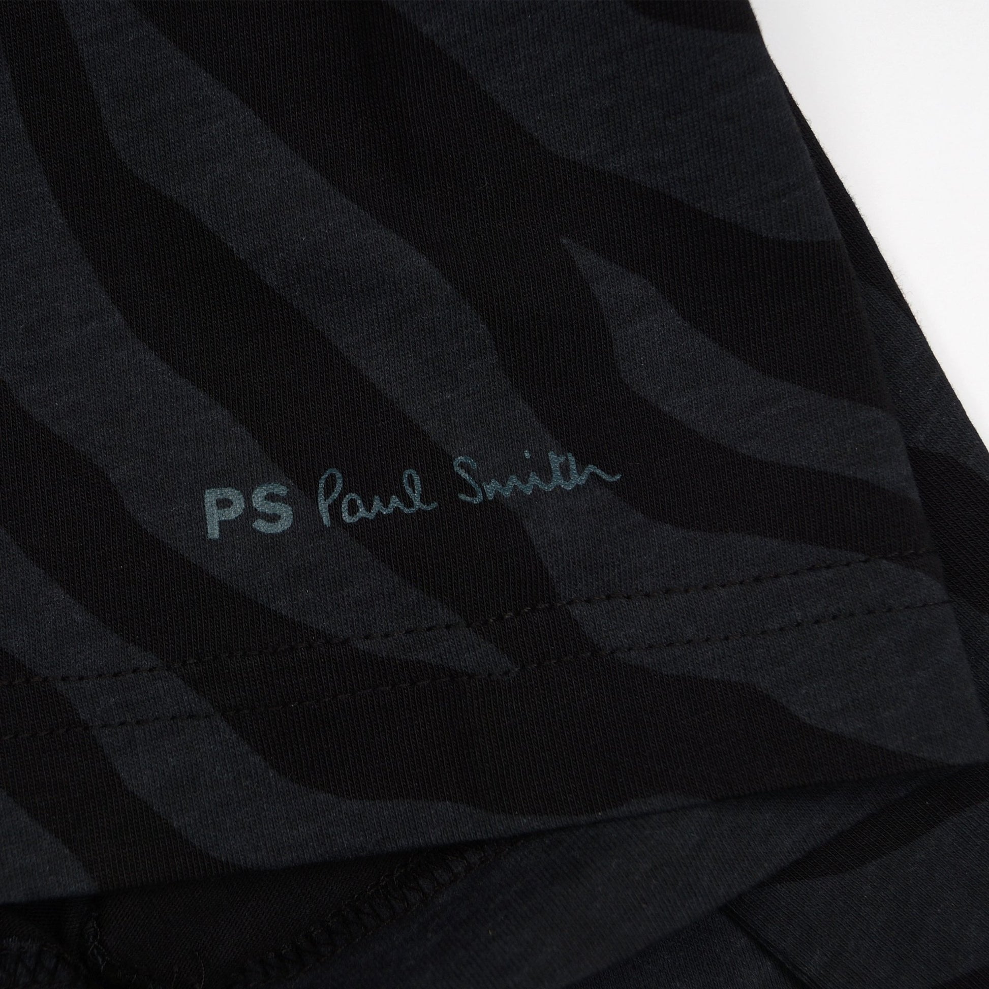 Paul Smith is a distinguished British designer who is renowned for his creative aesthetic, which combines tradition and modernity. Update your t-shirts for the new season with this Paul Smith printed tee. Featuring a charcoal grey tiger print on a black background, this t-shirt has short sleeves, a contrasting ribbed grey neckline and has the PS by Paul Smith logo printed on the cuff. Wear this tee with a pair of Jacob Cohen jeans and some Paul Smith trainers.