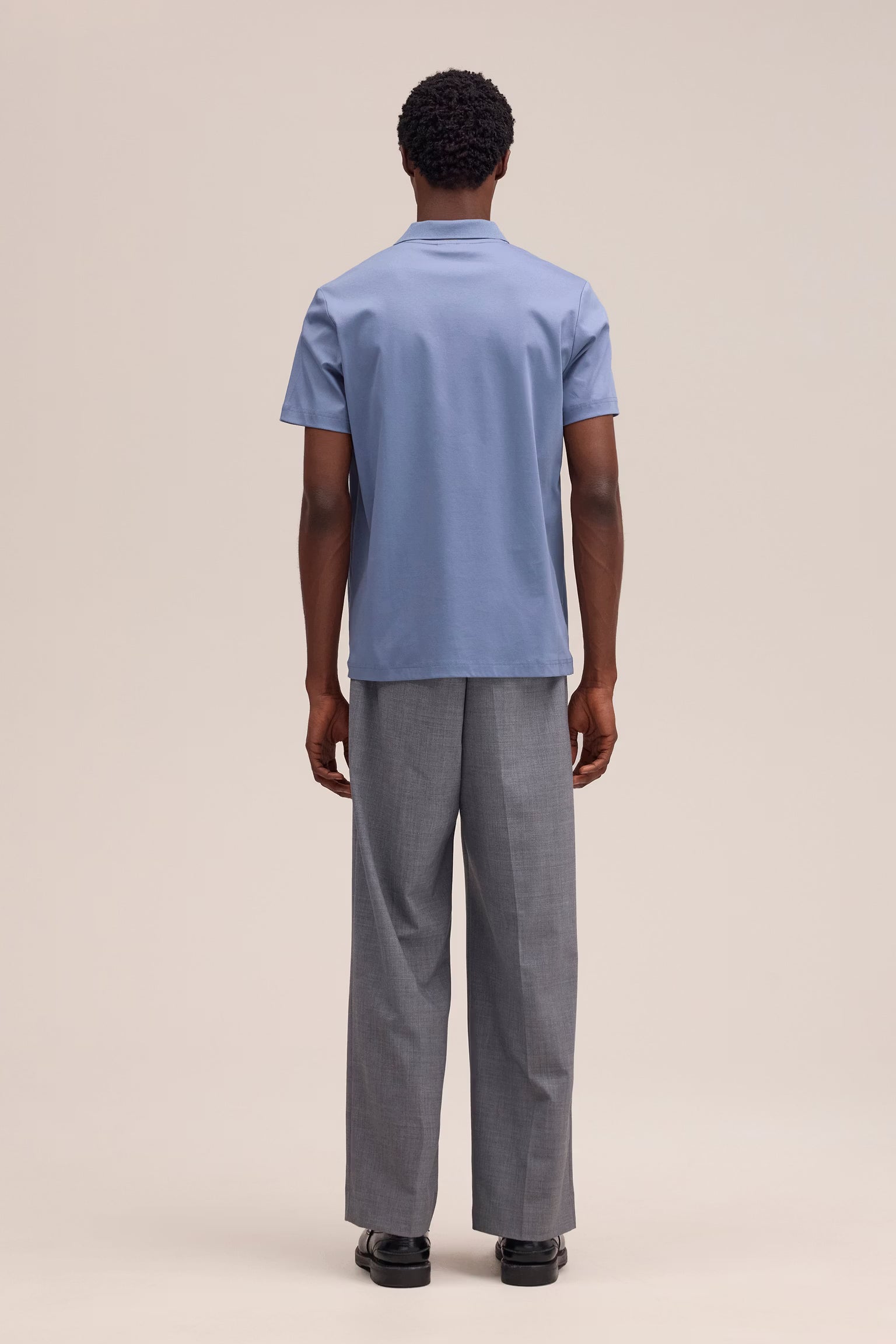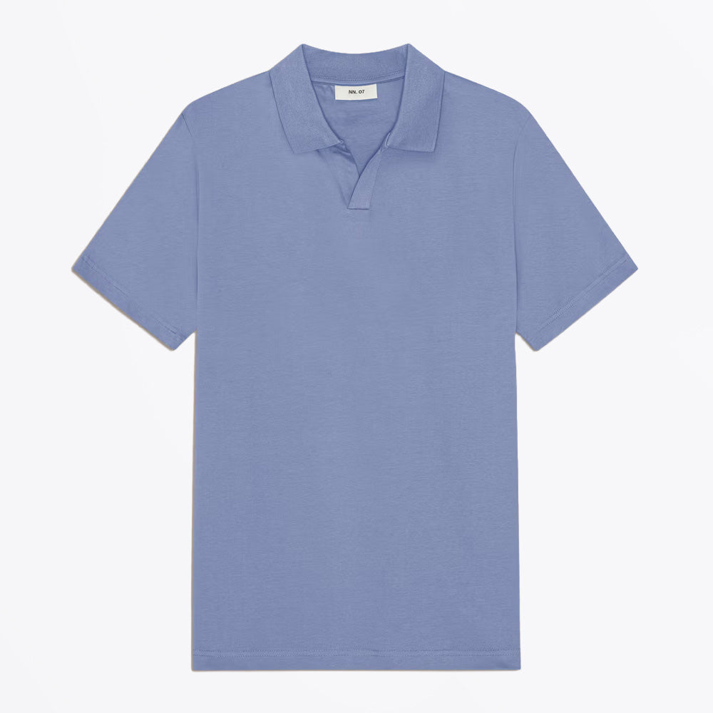 Paul Open Collar Organic Cotton Polo - Stone Blue
