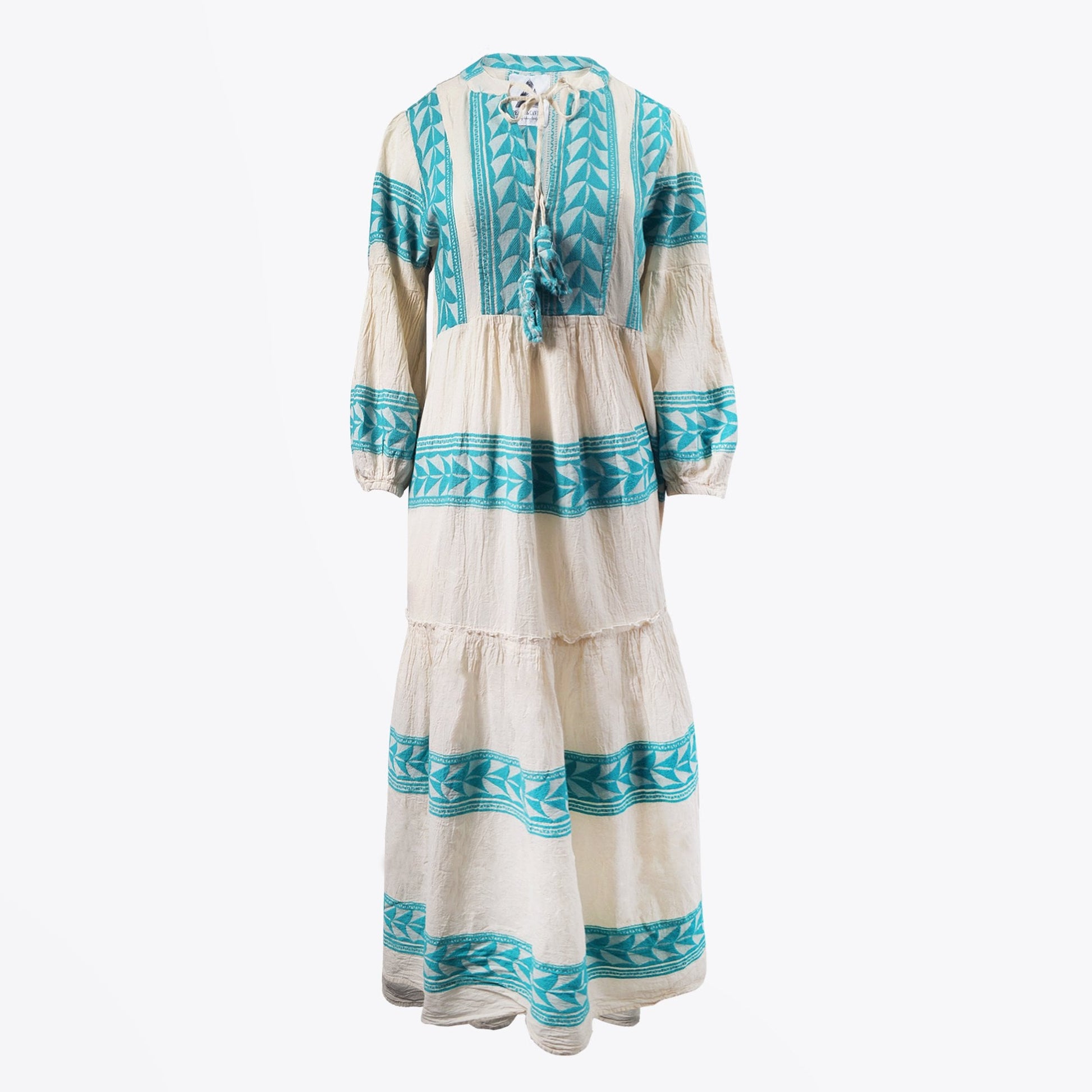 - Embroidered Aztec Maxi Dress - Teal/Cream