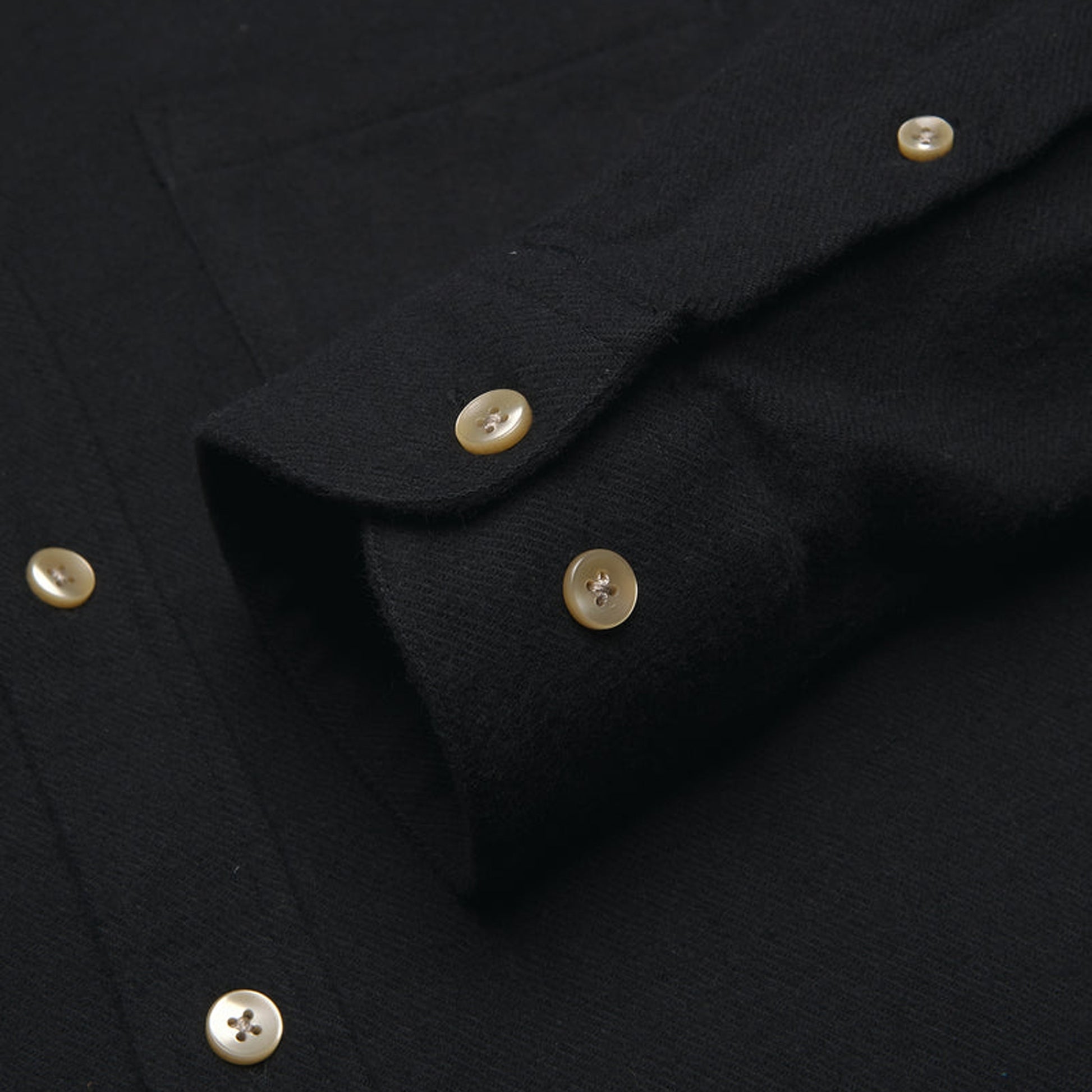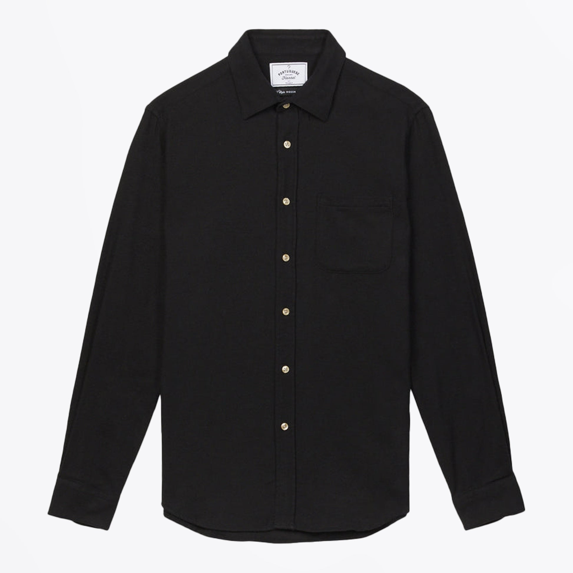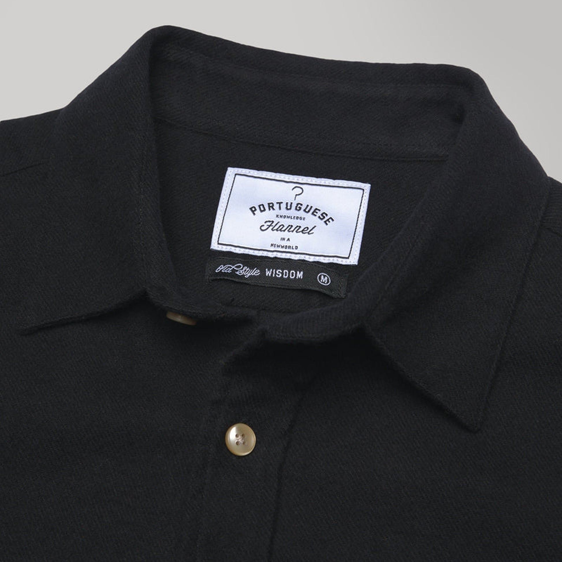 With a zealous commitment to craftsmanship and process integrity, Portuguese Flannel gets their inspiration from their heritage and traditional textile production, then tailoring it to fit into contemporary design. Add some staple designer pieces to your new season wardrobe with this shirt. This shirt is crafted from a slight brushed cotton material in black, this shirt features a white button fastening, with a breast patch pocket, buttoned cuffs, and a collared neckline. Wear this shirt with some designer denim and some Paul Smith trainers.