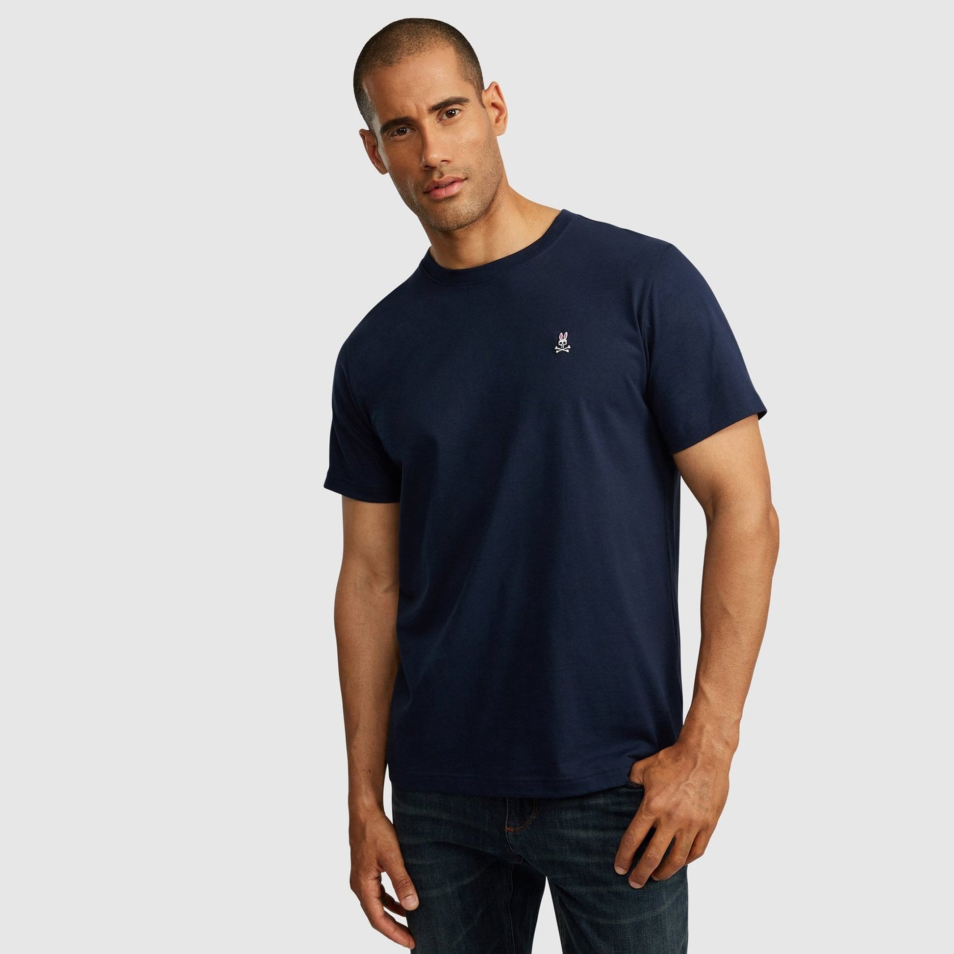 Created in 2005 by Robert Godley, the ex-creative director for Polo Ralph Lauren, Psycho Bunny creates timeless, cool wardrobe essentials that reflect your unique spin on life. Made of 100% Peruvian Pima cotton, the classic navy tee fits better than any you've worn and will reliably maintain its shape, wash after wash. Features of this versatile t-shirt include a crew neckline, classic Pyscho Bunny logo embroidery and taped seams to give you the most comfortable and well-crafted polo possible. Make it a staple of your wardrobe and stock the closet with quality craftsmanship and navy shade.