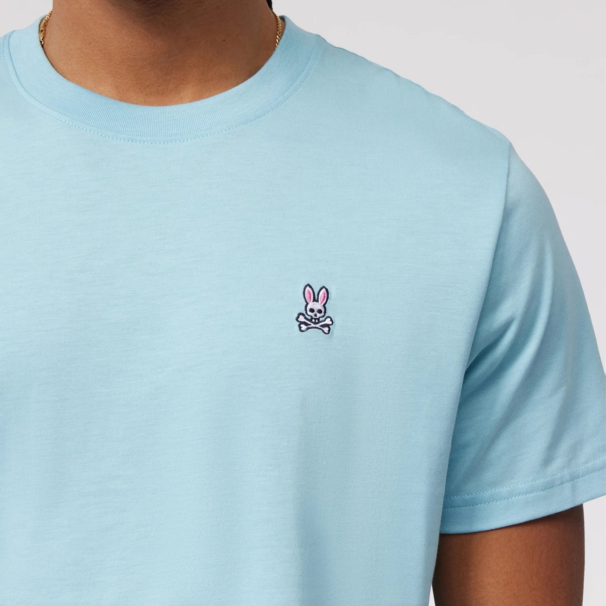 Created in 2005 by Robert Godley, the ex-creative director for Polo Ralph Lauren, Psycho Bunny creates timeless, cool wardrobe essentials that reflect your unique spin on life. Made of 100% Pima cotton, this classic tee fits better than any you've worn and with a trusted trim fit that sits between a classic and slim fit that will reliably maintain its shape, wash after wash. Features of this versatile bule t-shirt include a crew neckline, classic Psycho Bunny logo embroidery and taped seams to give you the most comfortable and well-crafted t-shirt possible. Make it a staple of your wardrobe and stock the closet with the most luxurious tee you’ll ever wear.