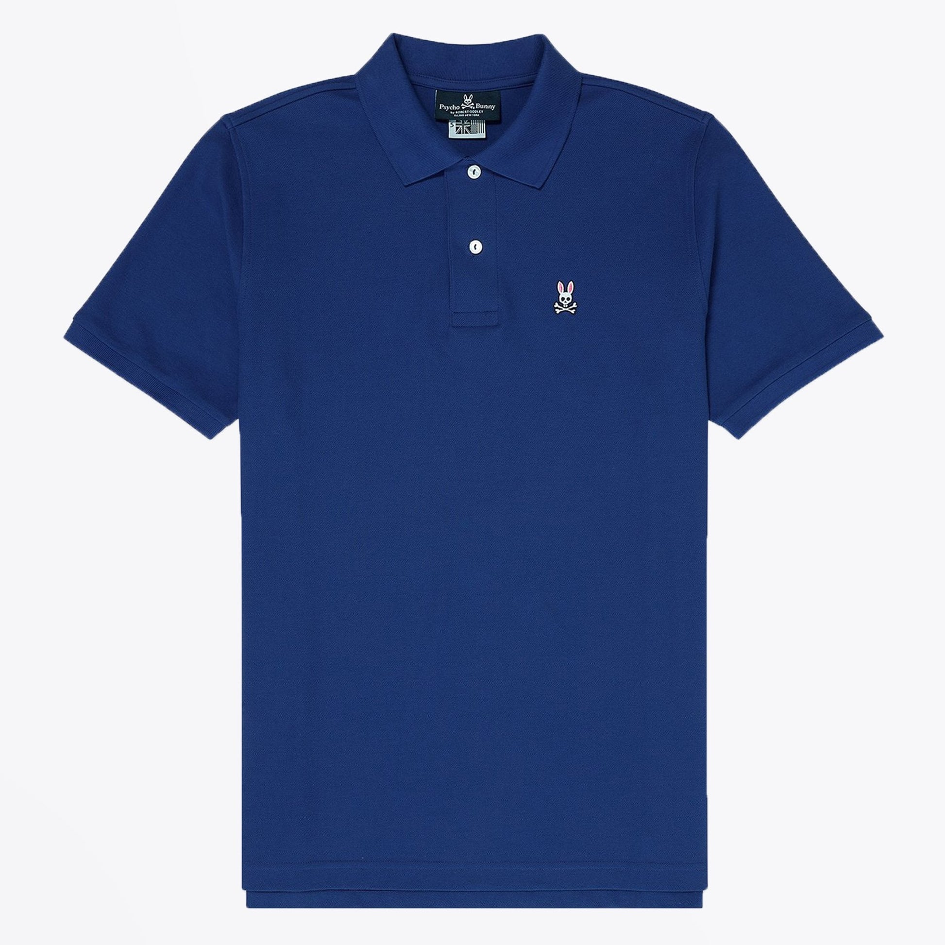 Created in 2005 by Robert Godley, the ex-creative director for Polo Ralph Lauren, Psycho Bunny creates timeless, cool wardrobe essentials that reflect your unique spin on life. Made of 100% Peruvian Pima cotton, the classic blue polo fits better than any you've worn and will reliably maintain its shape, wash after wash. Features of this versatile t-shirt include mother-of-pearl buttons, classic Pyscho Bunny logo embroidery and taped seams to give you the most comfortable and well-crafted polo possible. Make it a staple of your wardrobe and stock the closet with quality craftsmanship and blue shade.
