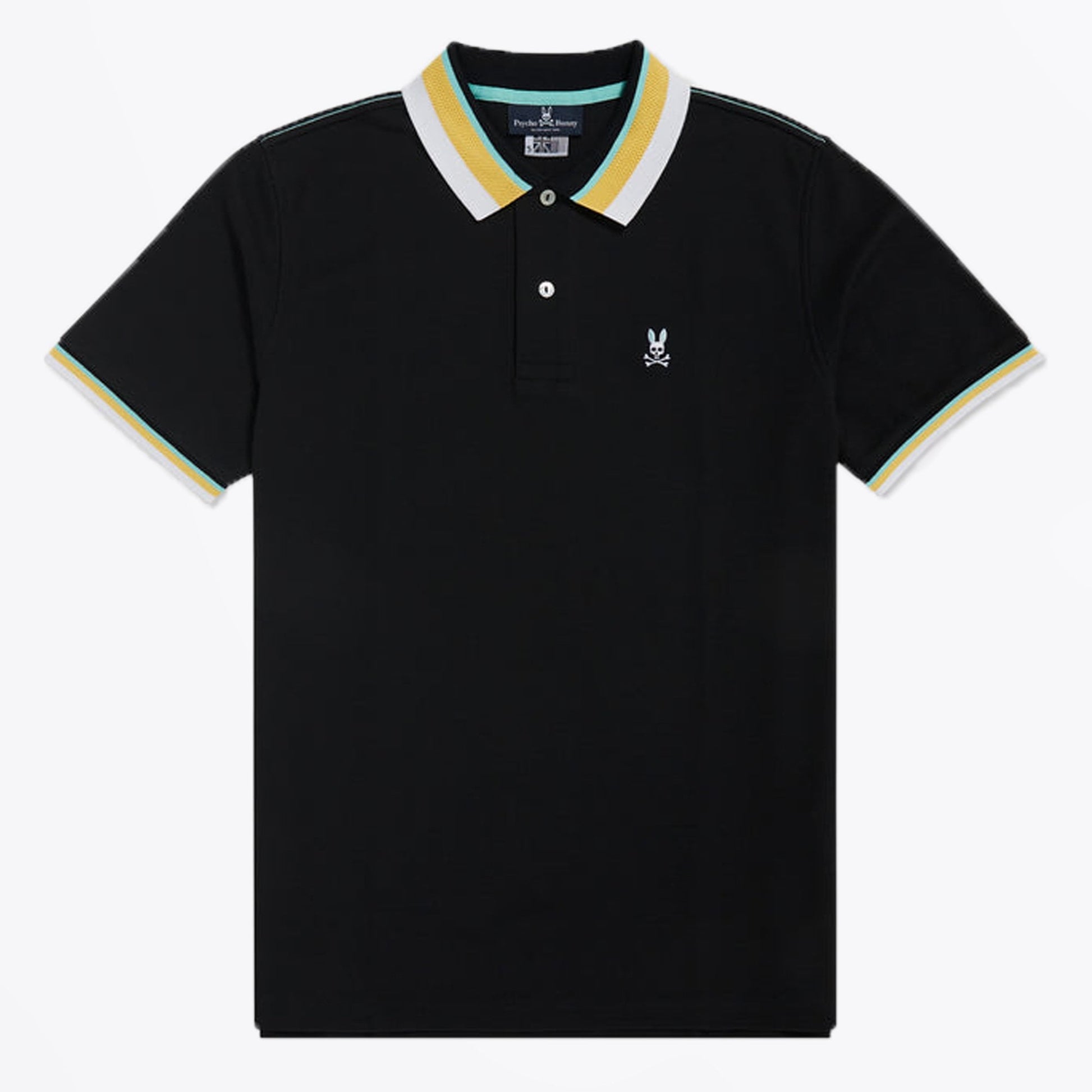Created in 2005 by Robert Godley, the ex-creative director for Polo Ralph Lauren, Psycho Bunny creates timeless, cool wardrobe essentials that reflect your unique spin on life. Made of the softest Pima cotton for a luxe on-body feel, this black ‘Oliver’ neon tipped polo fits better than any you've worn. Featuring the most luxurious trimmings such as mother-of-pearl buttons, taped seams, side vents and a meticulously embroidered logo to give you the most comfortable and well-crafted polo possible. The Oliver is cut slightly longer than the average polo and taped seams in the shoulders ensures it never loses its shape. This polo is finished with neon tipping on the cuffs and collar, which match the detailing on the embroidered logo and the collar features three types of knit creating a textured look. Team with our wide array of shorts collection or your favourite pair of jeans.