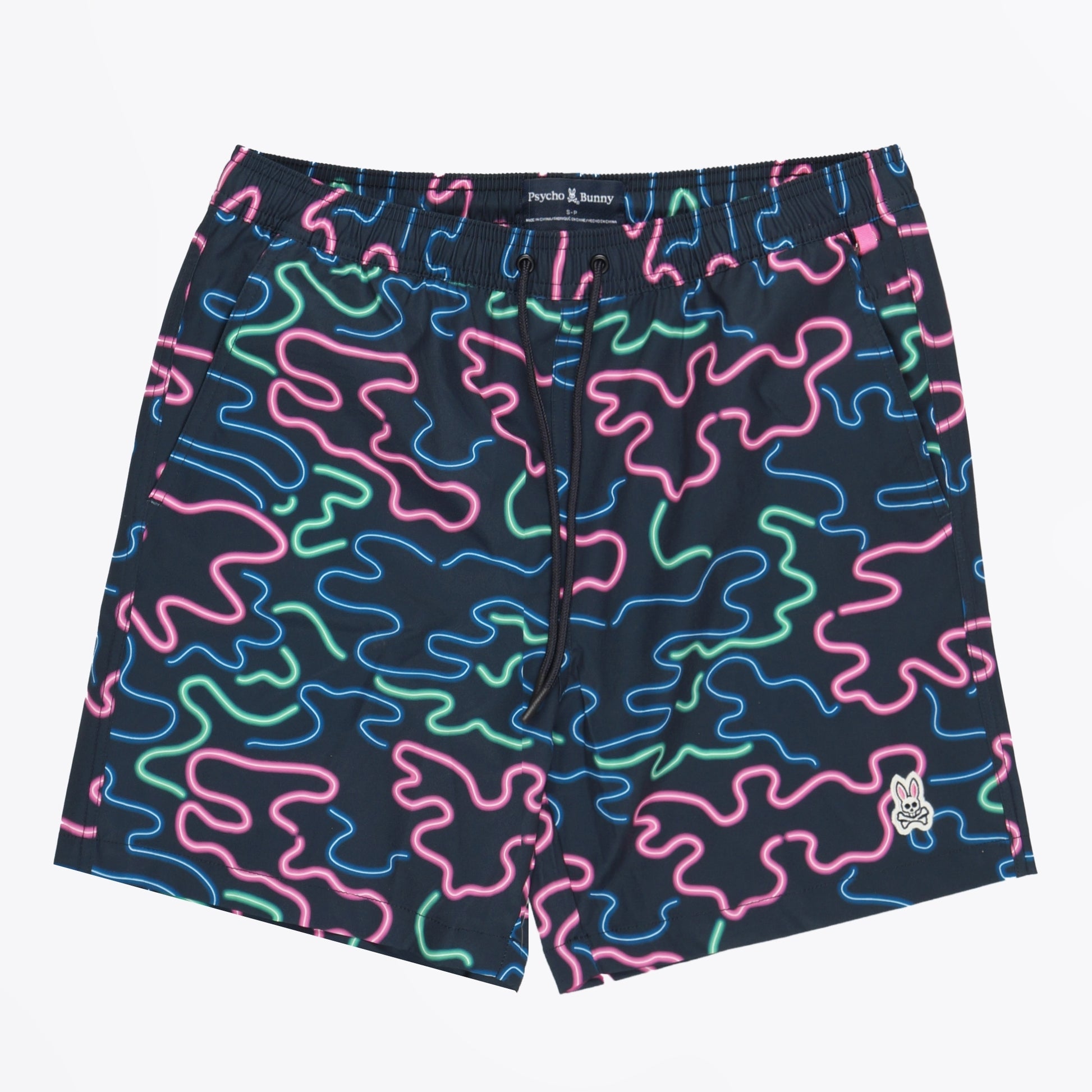 Created in 2005 by Robert Godley, the ex-creative director for Polo Ralph Lauren, Psycho Bunny creates timeless, cool wardrobe essentials that reflect your unique spin on life. A great way to add fun to your holiday looks, these swim shorts feature a neon squiggle pattern design on a black background, with an elasticated waistband, with a drawstring, side pockets and a single back pocket.