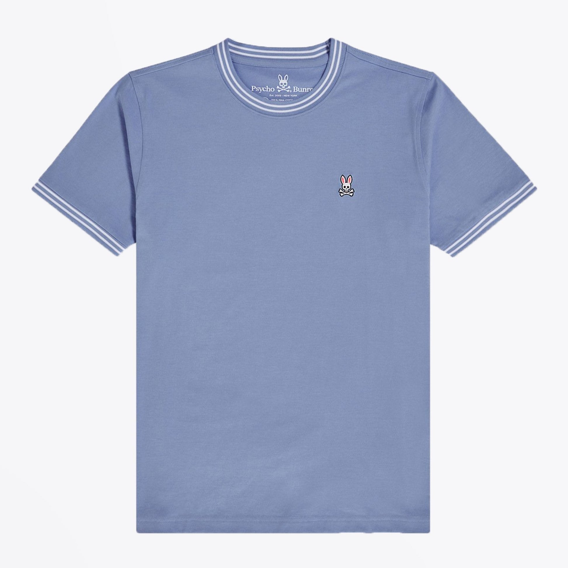 Created in 2005 by Robert Godley, the ex-creative director for Polo Ralph Lauren, Psycho Bunny creates timeless, cool wardrobe essentials that reflect your unique spin on life. Made of 100% Peruvian Pima cotton, the winslow tee in blue fits better than any you've worn and will reliably maintain its shape, wash after wash. Taped seams in the shoulders ensure that the Winslow never loses that perfect fit. The ribbed collar and cuffs feature contrast tipping, offering a touch of color. The Winslow is rounded off with our classic Psycho Bunny embroidered logo. The most comfortable and well-crafted t-shirt possible. Make it a staple of your wardrobe and stock the closet with quality craftsmanship and blue shade.