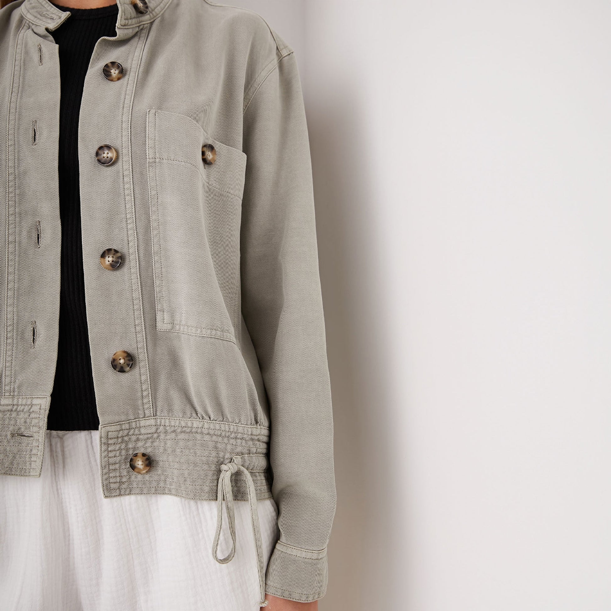 Relaxed and refined label, Rails is synonymous with accessible luxury by using premium fabrications in classic silhouettes and has quickly evolved into a global lifestyle brand. Add some laid-back styling to your trousers this season with this option from Rails. Crafted in a soft cotton twill, this sage-green jacket features a structured yet relaxed look in a military style with mandarin collar, dark horn buttons with pockets and a drawstring waist. Style the haven joggers with a casual tee and some Veja trainers for a great casual look.